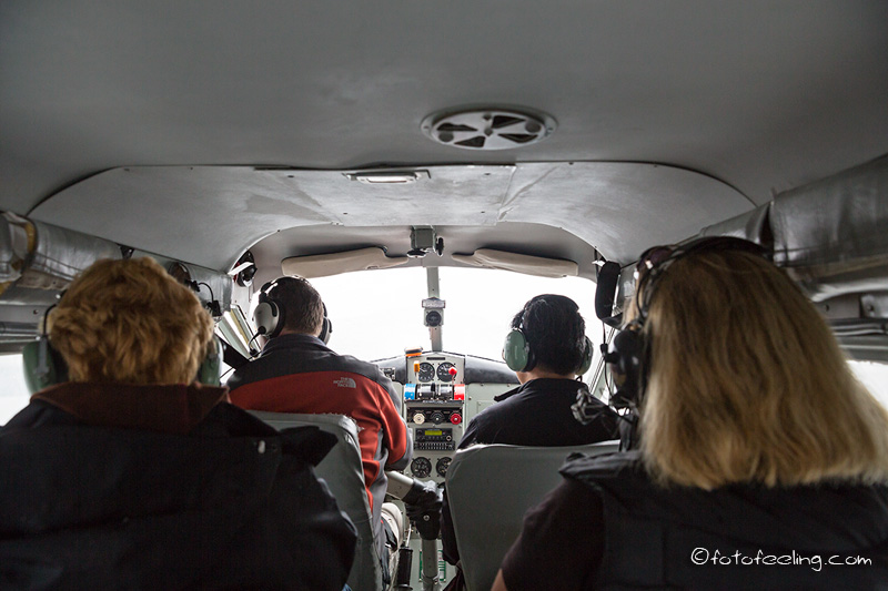 Wir stiegen in den kleinen Flieger, der wie ein Schlitten mit seinen Kufen auf uns wirkte. Dann ging es los. Unser Flieger gab Gas und wir schossen über das Wasser, bis er genug Anlauf genommen hatte und wir uns mühelos in den Himmel erhoben. Ein wirklich cooles Gefühl so ein Flug mit dem Wasserflugzeug.