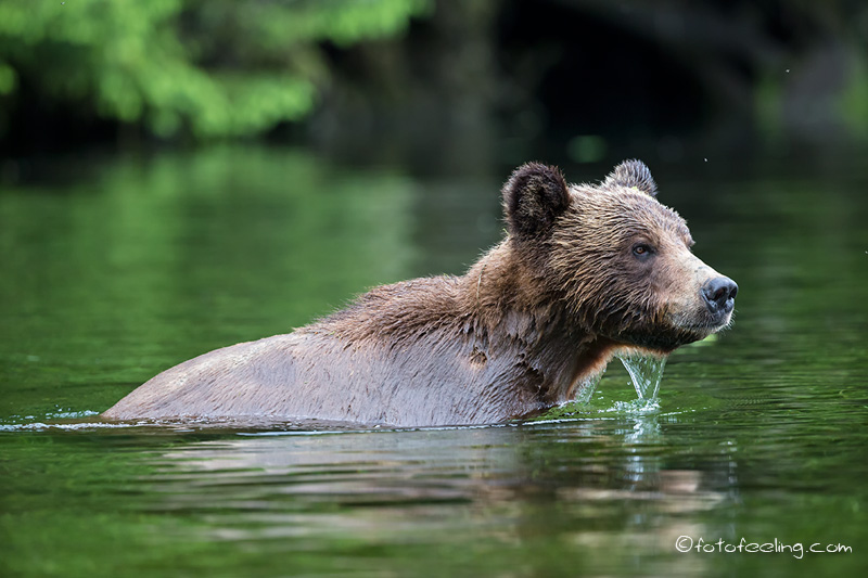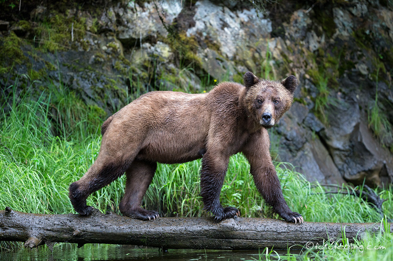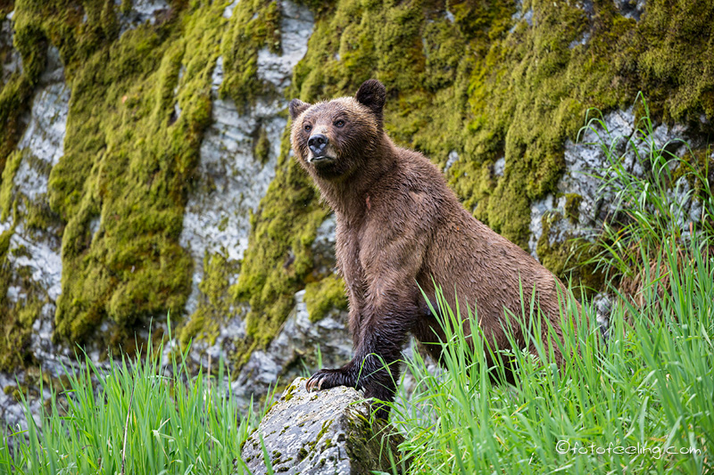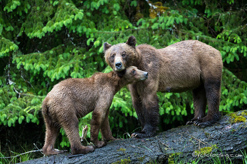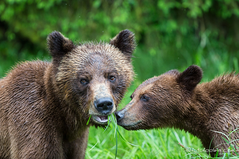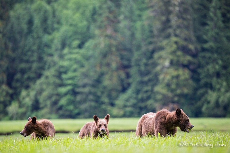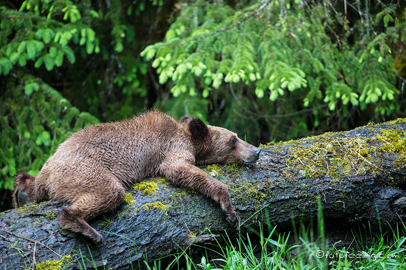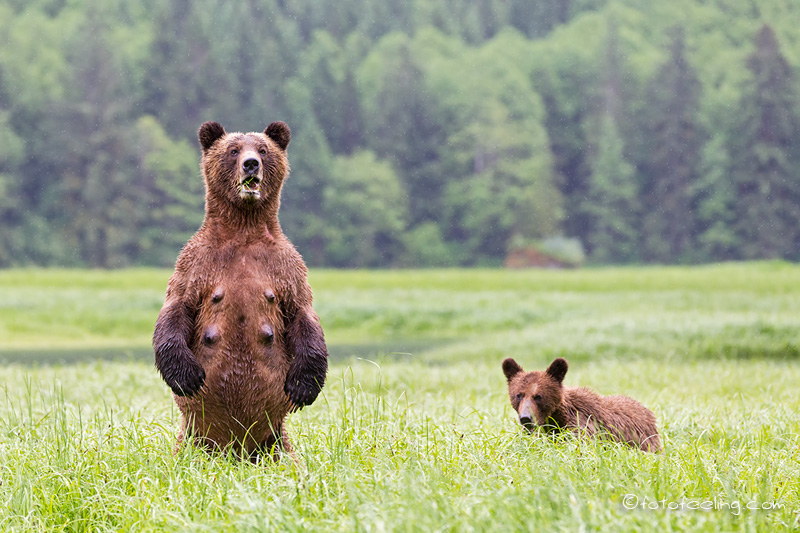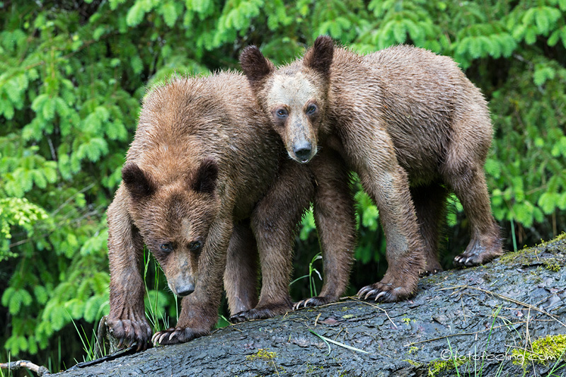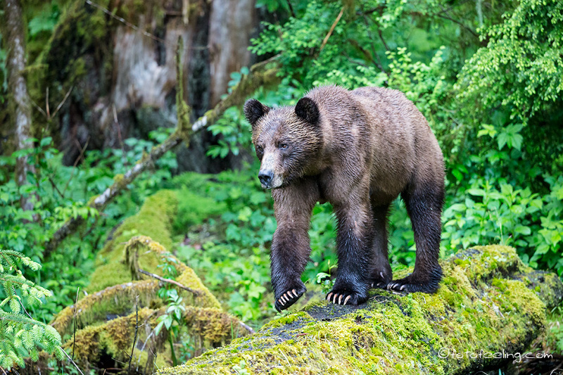 Die Grizzlys sind viel kleiner als ihre Kameraden, die Küstenbraunbären. So kam uns die Bärenmutter schon klein vor und auch ihre dreijährigen Jungen wirkten irgendwie noch wie kleine Bärchen auf uns.