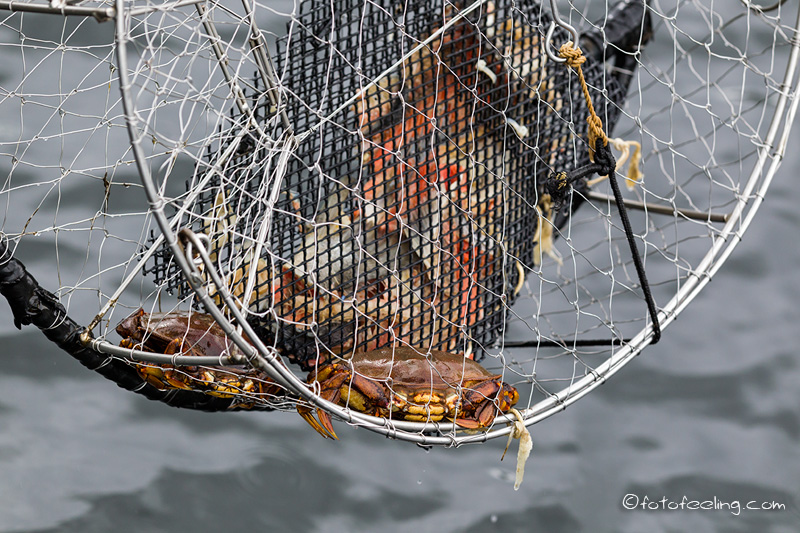Nach dem Frühstück fuhren wir mit dem Segelboot los und kontrollierten ein paar Krabbenkörbe, denn am Abend sollte es eine Krabbenmahlzeit geben. Doch der erste Korb war leer und wir sahen uns enttäuscht an. Jenn sah es und meinte grinsend: „Wir haben ja noch zwei weitere Körbe“ Im zweiten waren ziemlich viele Krabben, doch es stellte sich heraus, dass es nur Weibchen waren, die wurden wieder ins Meer entlassen. So blieb uns noch der letzte Korb. Erwartungsvoll standen wir an Bord und sahen zu, wie er aus dem Meer gezogen wurde. In ihm befanden sich zwei ausgewachsene Männchen. Einerseits freute ich mich und andererseits taten sie mir leid, aber ihr Schicksal war besiegelt.