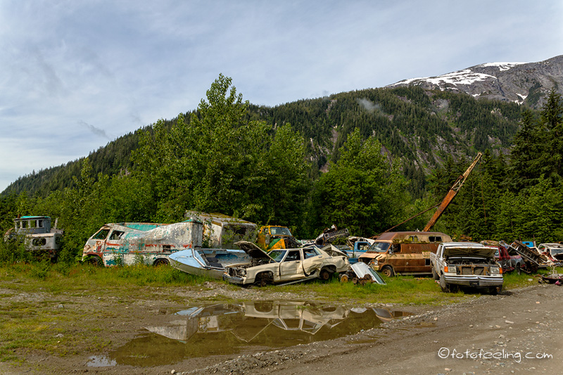 Von Stewart in Kanada wechselten wir nach Hyder in Alaska, aber hier gab es nicht wirklich eine Grenze. Nur ein Häuschen in dem wir niemanden sahen. Das wussten wir aber vorher schon und so fuhren wir weiter. Die hohen schneebedeckten Berge schlossen das Tal ein. Wieder eine Traumlandschaft.