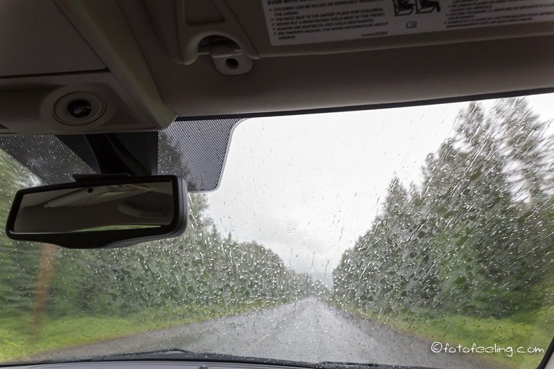 Wir fuhren weiter zu den Helmcken Falls, denn auch hier wollten wir uns den Fall noch einmal vor der Regenwandkulisse anschauen. Doch das Vorhaben mussten wir auf später verschieben, denn unterwegs begann es wie aus Kübeln zu gießen. Mitten im Regen lief ein brauner Schwarzbär auch Cinnamon genannt über die Straße. Für ein Foto reichte es leider nicht, denn es war viel zu dunkel und der Regen floss nur so die Scheiben hinab. Wir schauten dem Bären etwas zu und fuhren dann zu dem Wasserfall, wo wir uns auf den Parkplatz stellten und auf eine Regenpause warteten. Unserem Thermometer konnten wir beim Temperaturfall zuschauen von einstmals 20°C stand es mittlerweile auf 10°C, das war wirklich nicht mehr gemütlich. Chris hatte die gute Idee, dass wir "Mr. Brooks" zu Ende schauen könnten. Gesagt getan und wirklich als der Film aus war, hörte auch der Regen auf.