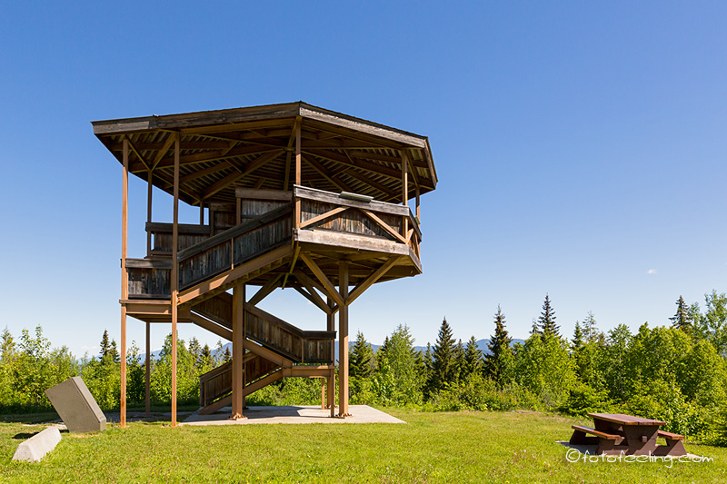 Zu unserem nächsten Ziel fuhren wir eine 3,6 km lange steile und sehr kurvige Schotterstraße, die uns zum Green Mountain Tower - einem Aussichtsturm brachte. Hier hat man einen sehr schönen Überblick über den südlichen Teil des Wells Gray Parks und die umliegenden Berge.