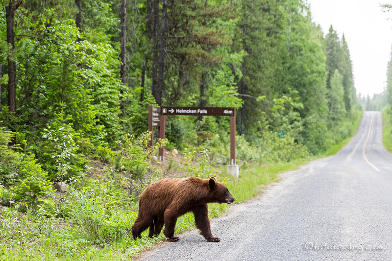 Zurück im Park lief uns dann noch ein kleiner Fuchs über den Weg, schaute sich kurz um und verschwand im Gebüsch. In der Nähe der Dawson Falls sahen wir wieder unseren Schwarzbären und beobachteten ihn eine Zeitlang.