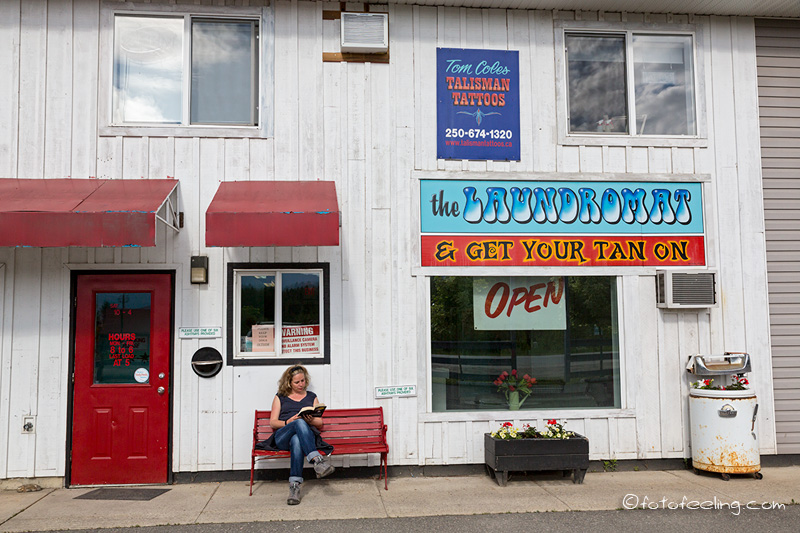 In Clearwater fuhren wir zum Waschsalon, der gerade in dem Augenblick öffnete. Während ich mich um die Wäsche kümmerte, versorgte Chris unser Auto mit Sprit und holte bei unserer leckeren Bäckerei Kaffee und Teilchen, die wir in der Morgensonne genüsslich verspeisten. Für eine Ladung Wäsche mit Trockner brauchten wir ca. eine Stunde. Danach machten wir uns auf den Weg zum Jasper Nationalpark.
