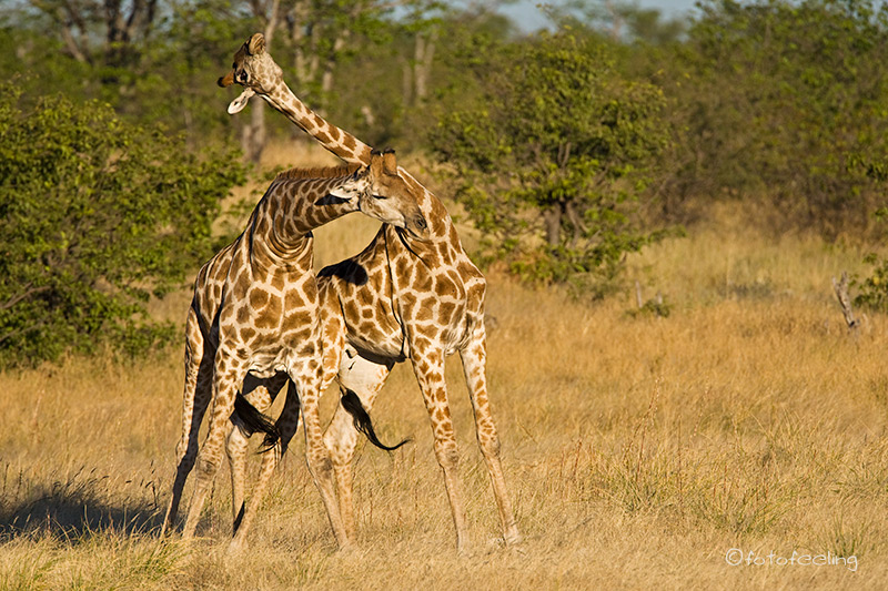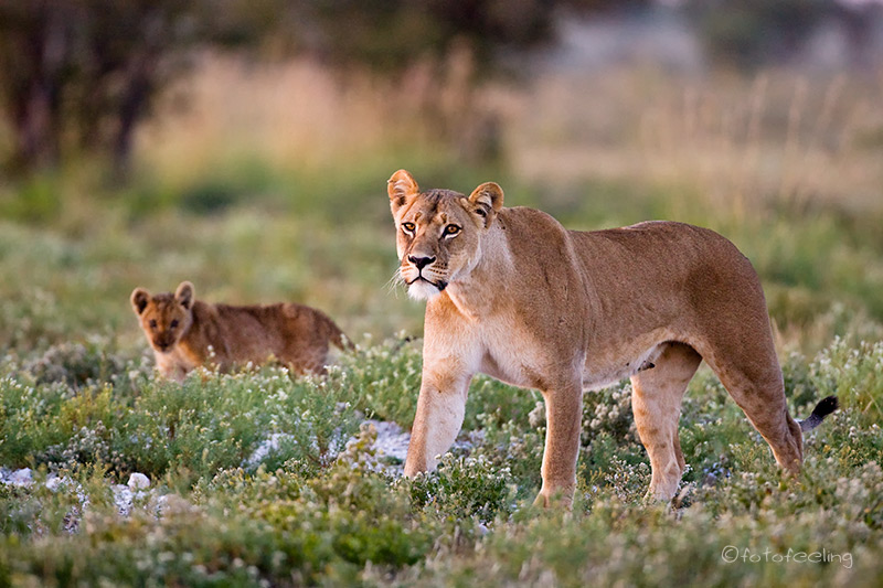 Natürlich hatte auch diese Nacht der Pascha seinen Revieranspruch deutlich gemacht und wir hatten das Gefühl, dass die Rufe und damit die Löwen näher zu uns gekommen waren. Noch in der Dämmerung fuhren wir los. Wir mussten nicht weit fahren, als uns die Löwin mit den Kleinen auf der Straße entgegen kam. Ich weiß gar nicht, wie man dieses Gefühl beschreiben kann, hocherfreut und ungläubig zugleich nimmt man die Szene wahr und doch kommt es einem unglaublich lang vor, bis man sie auch realisiert. Die Kleinen liefen der Mama nach, setzten sich zwischendurch immer wieder hin, rauften miteinander und waren so richtig nett anzuschauen. Langsam kam auch die Sonne hinter dem Horizont hervor und das erste Licht erhellte die Umgebung. Auf einmal drehte sich die Löwin um und wir folgten mit den Augen ihrem Blick. Da kam der Pascha angeschossen und steuerte direkt auf ein Kleines zu. Wir hielten den Atem an. Auch die Löwin lief schnell zu dem Kleinen, aber zum Glück machte Papa nur Spaß, warf den Kleinen um, begrüßte seine Löwin und fing an, mit dem Kleinen zu spielen. Hörbar atmeten wir wieder aus, denn die Babys waren noch sehr klein und wir hatten uns schon gewundert, dass sie so früh beim Pascha waren. Der stolze Papa brüllte auch wieder lautstark und horchte, aber zum Glück antwortete niemand. Die Löwen spielten noch eine Weile mit den Kleinen und verschwanden dann in einem Wäldchen. Wir warteten und die zwei kleinen Jungs kamen noch einmal heraus und machten Kletterversuche an einem Baum. Später wanderte die Familie immer weiter auf die Pfanne und wir beschlossen, zur Campsite zurückzufahren und sie von dort aus zu beobachten. Während wir frühstückten, behielten wir die Kleinfamilie im Auge, die mittlerweile mitten auf der Pan war. Komischerweise ließen sich die anderen Tiere fast gar nicht stören. Als die Löwen dann die Richtung änderten und in relativer Nähe zu unserer Campsite die Straße passieren wollten, fuhren wir schnell los und konnten sie beobachten, als sie auf uns zukamen. Wieder markierte der Pascha lautstark sein Revier, während die Löwin mit den Kleinen in den Büschen verschwand. Es war unglaublich beeindruckend. Später folgte er seiner Familie und das war leider das letzte Mal, dass wir die Kleinen gesehen haben. Immer wieder muss ich an sie denken und hoffe, dass es ihnen gut geht und sie groß werden dürfen. Sie haben uns viel Freude bereitet und uns mit ihrer unschuldigen Lebensfreude viele unvergessliche Momente geschenkt. Den Rest des Tages verbrachten wir mit den üblichen Geschäftigkeiten fauler, zufriedener Touristen. Wir duschten, tranken Kaffee, lasen in unseren Büchern und genossen die Ruhe und Harmonie unserer Tau Pan, die für uns die schönste Wildlife Campsite ist. Eine kleine OP musste ich auch noch durchführen, denn Chris hatte sich am Morgen eine Zecke eingefangen. Aber ich hatte ja meine Zeckenzange dabei und nach zwei Anläufen war zum Glück der Patient am Leben und die Zecke entsorgt. Chris behielt die Stelle wegen Borreliose im Auge, aber es bildete sich zum Glück kein Hof. Gegen FSME sind wir geimpft und mussten uns deshalb nicht beunruhigen. Afrikanisches Zeckenfieber (African Tick Bite Fever), das mit malariaähnlichen Fieberschüben ausbricht, bekam er zum Glück im Laufe der Zeit auch nicht. Am Nachmittag drehten wir noch ein paar Runden um unsere Pan, aber leider ließen sich die Löwen nicht blicken. Dafür konnten wir eine große Giraffengruppe beobachten, die zum Trinken auf die Pfanne kam. Wir genossen den Sundowner an einem Baum in der Nähe unserer Löwenfamilien, aber auch in der Dämmerung bekamen wir sie nicht mehr zu Gesicht. Schade! Aber wir hatten ja schon so viel Glück gehabt. Zurück auf der Campsite grillten wir und genossen die friedliche Ruhe, die nur durch das lautstarke Kreischen der Waffenkiebitze durchbrochen wurde. Tageskilometer: 51 km Gamedrive Übernachtung: Tau Pan Campsite |