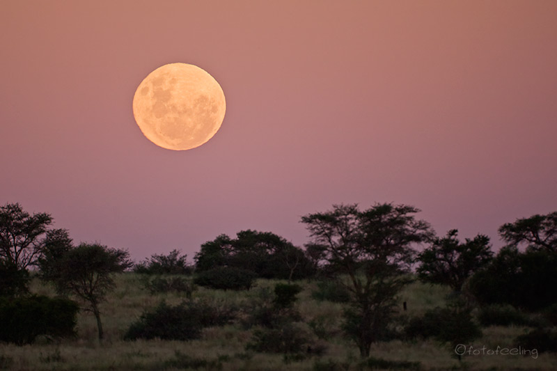 Dank unserer lauten südafrikanischen Nachbarn waren wir wieder die Ersten am Gate und somit auch die Ersten, die ein Löwenpaar auf einer roten Sanddüne im frühen Morgenlicht entdeckten. Es ist immer wieder ein ganz besonderes Gefühl, diese majestätischen Katzen zu finden und beobachten zu können. Sie waren sehr müde, aber auf einmal sprang die Löwin auf und machte den Pascha auf seine ehelichen Pflichten aufmerksam. Er kam ihnen natürlich gerne nach und musste sich danach mit einem Sprung zur Seite in Sicherheit bringen. Leider beschloss Madam über die Düne in den Schatten zu gehen und liebestrunken lief ihr der Pascha hinterher. Wir warteten noch ein wenig und fuhren schon sehr zufrieden mit dem Morgen weiter. Aber es kam noch viel besser. Ein gutes Stück hinter Kij Kij kamen uns auf der Straße zwei Löwinnen entgegen, hinter ihnen war noch eine dritte, die wiederum zwei sehr kleine Babys dabei hatte. Wir trauten unseren Augen kaum, so kleine Löwen hatten wir noch nie so nah gesehen. Begeistert stellten wir unser Auto quer und beobachteten die Kleinen. Sie liefen tollpatschig hinter der Mama her, die kurz vor uns vom Weg auf das Flussbett auswich und sich sehr zu unserer Freude dort hinlegte. Etwas später lief sie weiter zum hohen Gras und fraß es gierig, die Kleinen immer hinterher. Natürlich kam es, wie es kommen muss, wenn eine Katze Gras frisst, sie erbrach sich in hohem Bogen. Die anderen beiden Löwinnen ließen sich wie Leibwächter rechts und links der Mama nieder und passten auf. Irgendwann einmal fing eine der Löwinnen an zu rufen und vermutlich antwortete der Pascha. Wieder waren sie so nah, dass das Auto fast von den Rufen vibrierte. Es war einfach klasse!!! Immer wieder riefen die Löwinnen und lauschten den Antworten des Paschas. Die Mama lief wieder ein gutes Stück auf uns zu und legte sich relativ nah zu uns ans Auto. Die Kleinen schauten uns erst einmal eine Weile komisch an und kamen dann vorsichtig auf uns zu gelaufen, bis sie bei der Mama anhielten. Irgendwie fühlten wir uns wie Auserwählte, denen ein kurzer Einblick in das Familienleben eines Löwenrudels vergönnt war. Irgendwann wurde es der Löwenmama zuviel und sie ging mit den Kleinen relativ weit weg in den Schatten der Bäume. Überglücklich fuhren wir weiter, denn die Rufe des Paschas waren relativ nah. Wir mussten auch nicht weit fahren, da fanden wir ein Löwenpaar, das gerade in der Sonne schlummerte. Aber auch hier täuschte die Ruhe, denn anfangs musste der stattliche Löwe alle fünf bis sieben Minuten seinen Pflichten nachkommen. Es war unglaublich und wir sahen mal wieder, dass der Begriff rollige Katze mehr als passend ist. Sehr witzig fanden wir auch sein Verhalten bei der Paarung, zuerst war er äußerst liebevoll, dann biss er sie ins Ohr und bekam somit von uns den Namen Mike Tyson und zuletzt legte er noch seine Hinterpfote auf den Rücken seiner Auserwählten, damit er besser wegspringen konnte. Es war wirklich ein Schauspiel. Bis zum Mittag blieben wir und beobachteten die zwei. Etwas weiter weg im Schatten eines großen Baumes fanden wir dann noch unsere vier Junglöwen, die interessiert Mama und Papa beobachteten. Aber auch das interessanteste Schauspiel wird irgendwann ermüdend, besonders wenn die Schauspieler eine Szene immer wieder spielen und so schliefen die vier bald in der Mittagshitze ein. Auch wir hatten langsam einen „Löwenhunger“ und beschlossen, in Rooiputs Pause zu machen. Dort setzten wir uns in den Schatten der Bäume und Chris briet leckeren knusprigen Schinken und ich machte uns Spiegeleier dazu. Ein fürstliches Mahl, aber nach diesem Morgen hatten wir es uns wirklich verdient. Leider konnten wir die Mama mit den Kleinen nicht mehr entdecken, aber andere Touristen erzählten uns, dass sie weit weg über die Dünen gegangen wären. Am Nachmittag fuhren wir wieder zum frisch verliebten Paar und fanden sie fast noch an der gleichen Stelle wieder. Einziger Unterschied war, dass die Abstände der Paarungen nun auf ca. 20 Minuten gestiegen waren. Wir verbrachten bei den beiden und den vier Junglöwen den ganzen Nachmittag, aber die Jungs machten kaum eine Bewegung. Irgendwann verschwand das Licht im Flusstal und wir fuhren zurück auf unsere zaunlose Campsite. Es wurde sehr schnell dunkel, doch schon bald brannte unser Lagerfeuer. Leider ließ der Mond auf sich warten, aber wir bauten unsere Stühle auch wegen der Kälte relativ nah am Feuer auf und genossen das Bushman-TV und den nahezu perfekten Sternenhimmel. Die Milchstraße leuchtete und wir bewunderten anfangs den Orion und später den Skorpion. Irgendwann schaute ich zur Nachbarcampsite und sagte zu Chris: „Schau mal, dort hinten muss noch eine andere Campsite sein, die haben nämlich ein ganz schön großes helles Feuer.“ Wir diskutierten ein wenig hin und her, denn eigentlich war dort hinten gar kein Weg mehr, aber das Feuer sprach dagegen. Eine Weile später schaute ich wieder zu dem Feuer hinüber und musste plötzlich laut loslachen, denn das Feuer wurde immer größer und höher, aber nun konnte man auch erkennen, dass es kein Feuer, sondern der Mond war, der riesengroß hinter den Büschen aufging. Fasziniert betrachteten wir den Mond und langsam wurde auch unsere Umgebung wieder erhellt. Ein kleiner Graufuchs kam uns auch noch besuchen und schnupperte um unser Feuer herum auf der Suche nach etwas Essbarem. Ein wirklich perfekter Tag mit einem würdigen Abschluss lag hinter uns und wir gingen sehr zufrieden ins Bett. Übernachtung: Rooiputs Campsite 3 / Botswana |