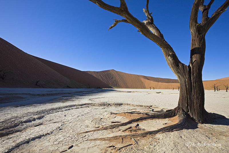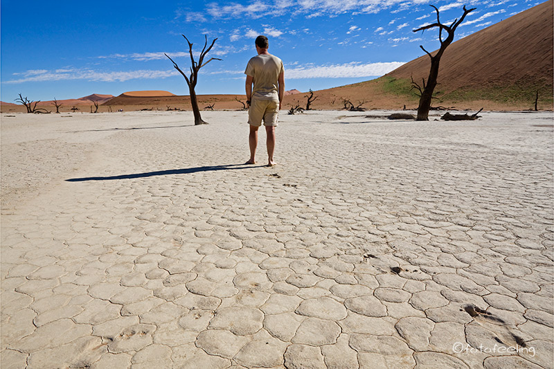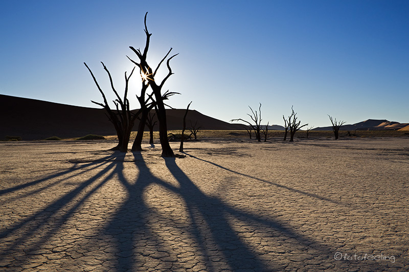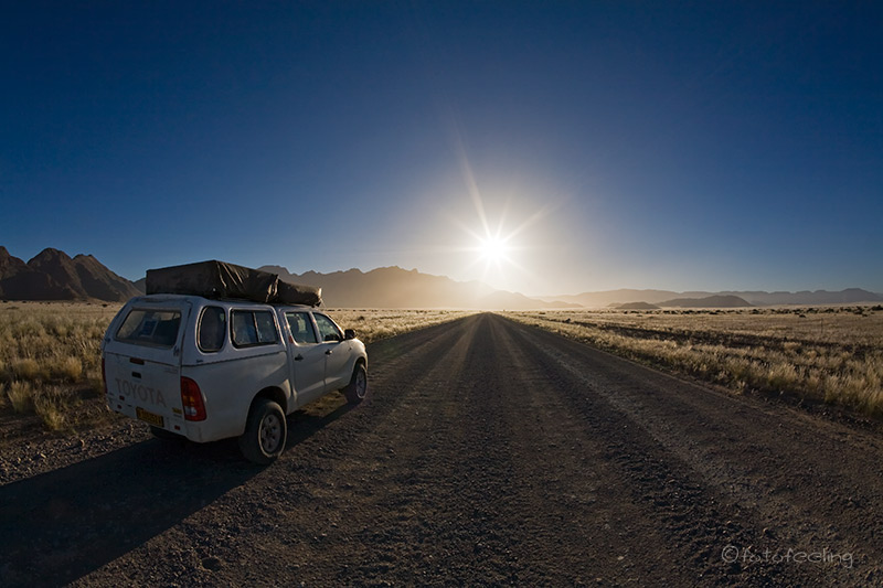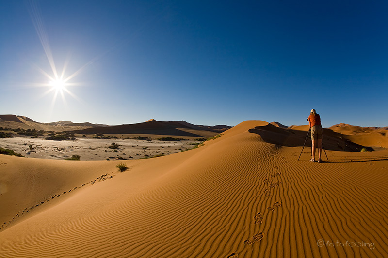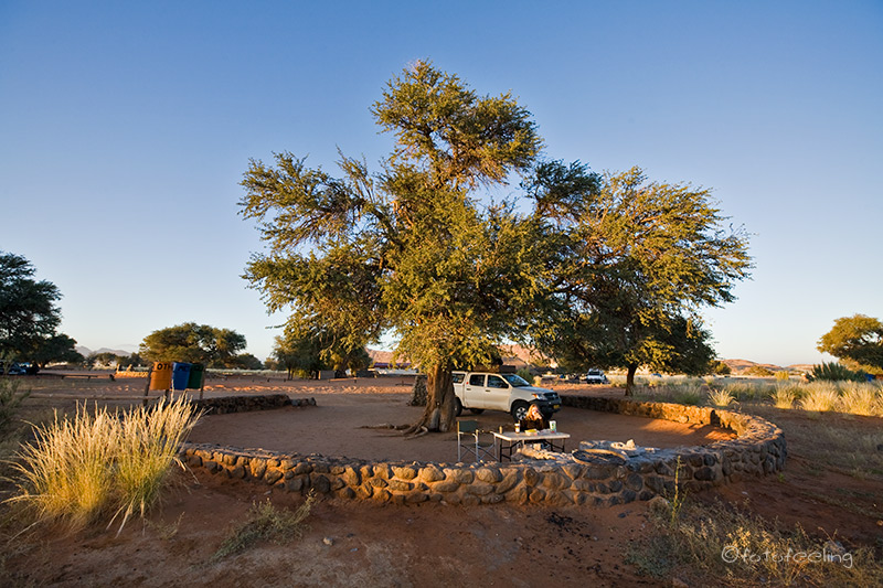 Sehr früh klingelte unser Wecker und verschlafen kletterten wir aus dem Zelt. Trotz nachtschlafender Zeit herrschte schon eine rege Geschäftigkeit, denn die meisten wollten so früh wie möglich zu den Dünen, da man ja nur in den frühen Morgen- und späten Abendstunden das schöne Licht- und Schattenspiel hat. Natürlich waren wir die ersten am Gate, aber keine Minute später stand schon der erste Overlander hinter uns und die Schlange wurde immer länger. Tageskilometer: 130 km (Sesriem - Sossusvlei - Sesriem) Übernachtung: Campsite 16 / Sesriem |