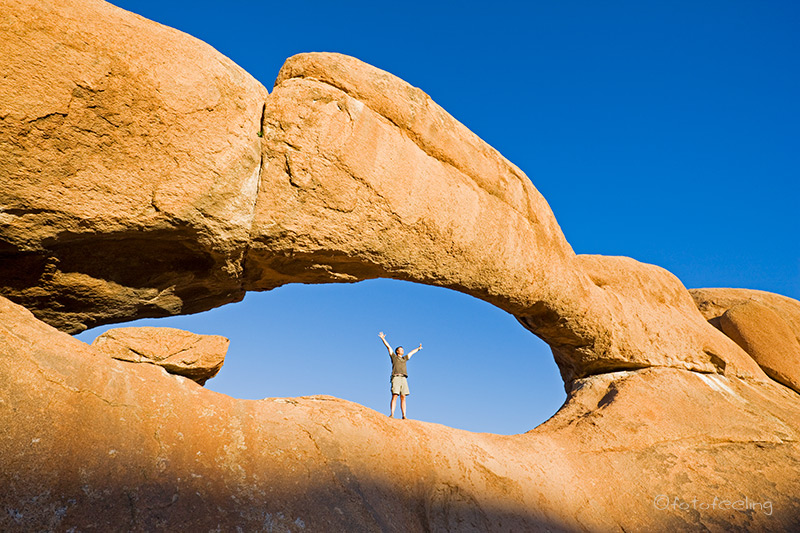 Wir hatten beide verhältnismäßig gut geschlafen und hatten einen schönen wolkenfreien Sonnenaufgang an der Arch. Von dort aus fällt das erste Licht auf die Spitzkoppe und wir genossen die Ruhe und Vollkommenheit des frühen Morgens. Tageskilometer: 470 km Übernachtung: Okaukuejo Campsite - Etosha National Park |