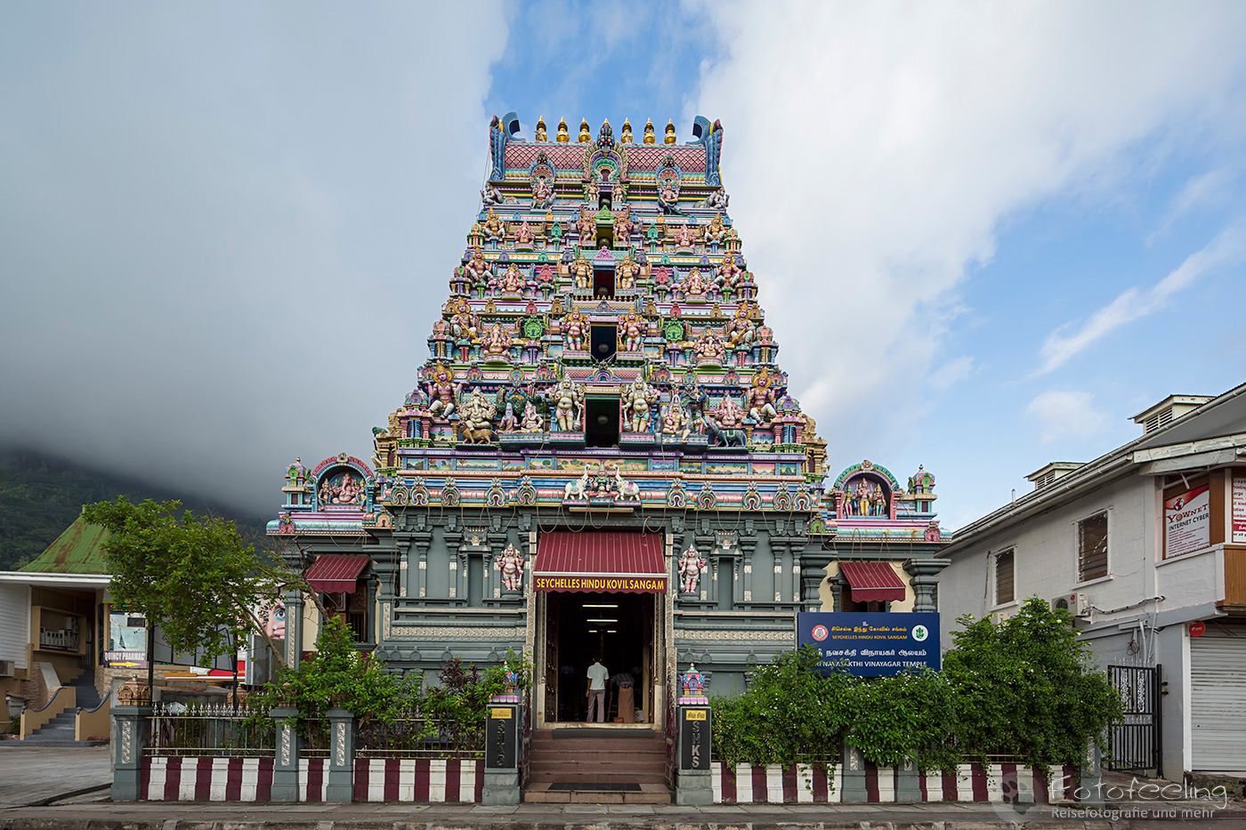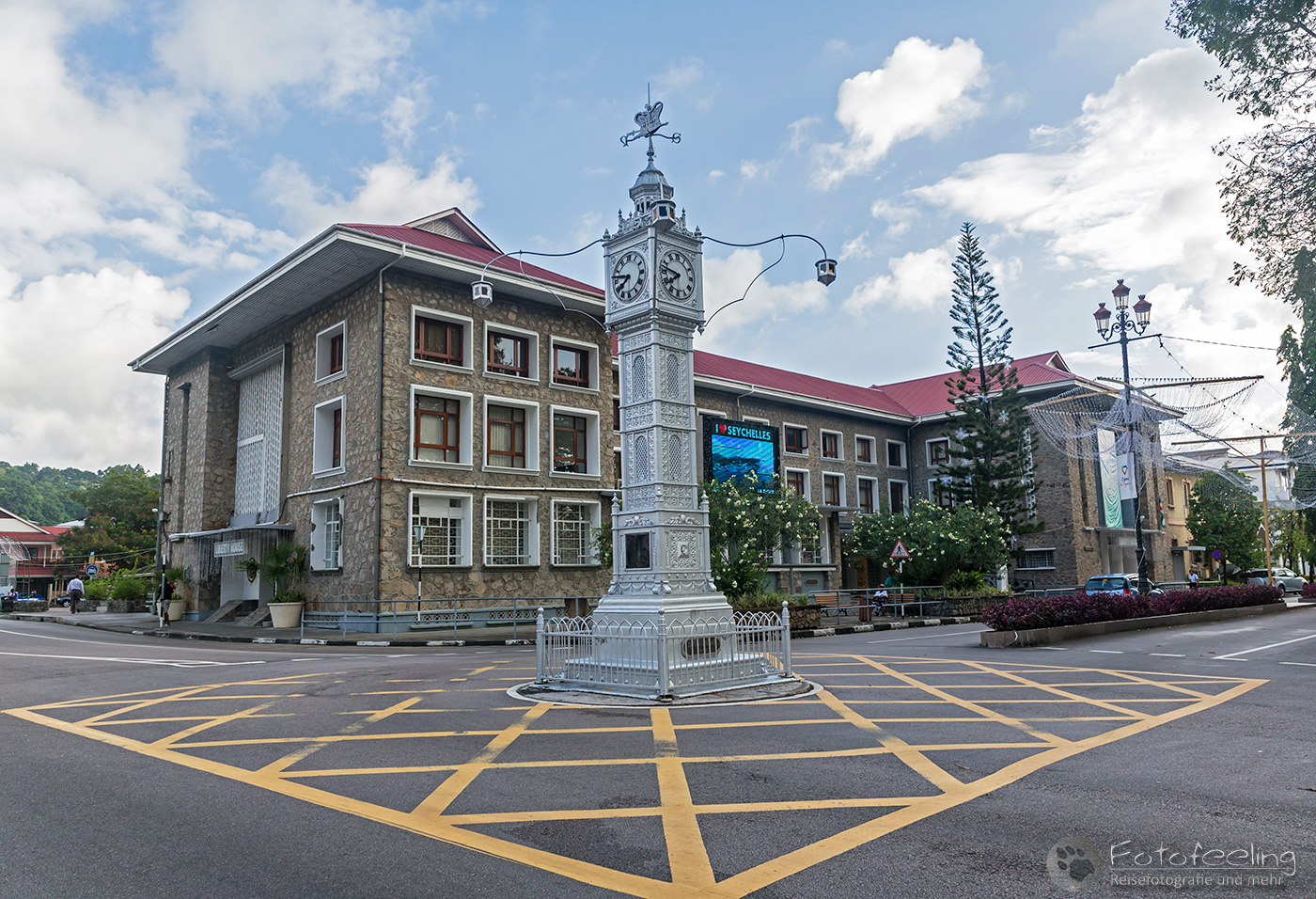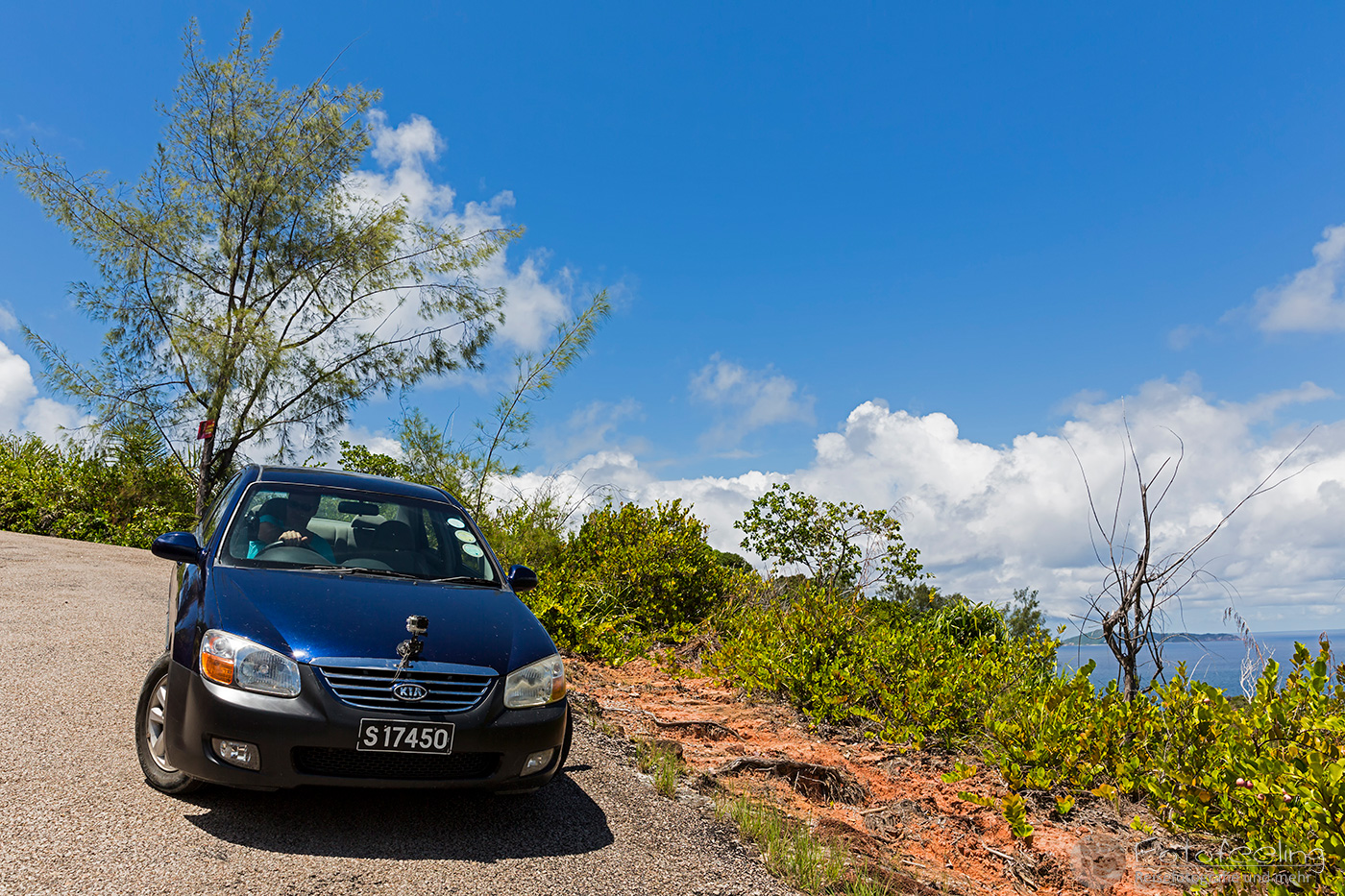 Chris wollte unbedingt auf die andere Seite der Insel zum Traumstrand Anse Intendance, der im Süden von Mahé liegt. Also rein ins Auto und los. Doch um zum Strand zu kommen, mussten wir einmal mitten durch die Hauptstadt Victoria. So kamen wir an dem bunten Hindutempel, dem berühmten Markt Sir-Selwyn-Clark, dem bekannten Clock Tower mitten auf der Kreuzung und einer großen Kirche vorbei. In der Stadt herrschte ungewohnt viel Verkehr auf gewohnt engen Straßen. Das war vielleicht anstrengend! Nachdem wir aus Victoria wieder heraus waren, wurde auch der Verkehr erträglicher und schon bald waren wir entlang der Küste unterwegs. Wir fuhren durch kleine Orte und an tollen Stränden vorbei. Der Weg zog sich, denn immer wieder mussten wir anhalten und ein paar Bilder machen.