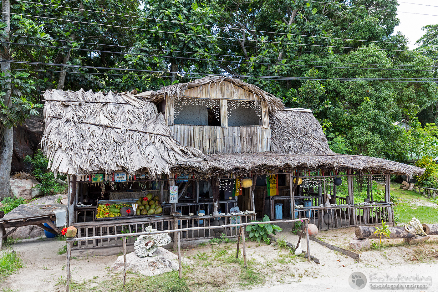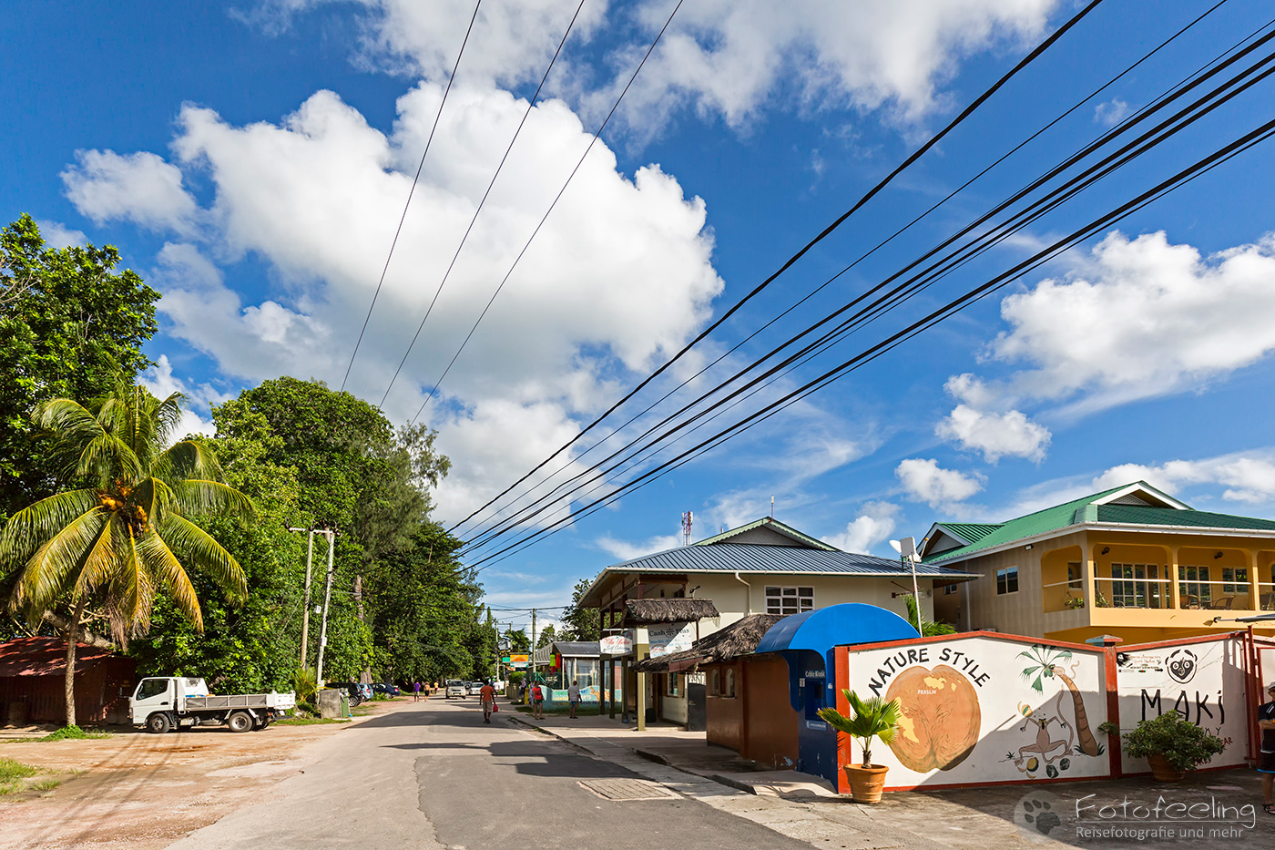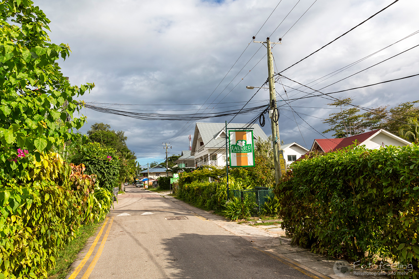 Zuerst schauten wir uns den Anse Volbert an, den man am besten von dem kleinen beschaulichen Touristenort Cote d´Or aus erreicht. Gleich am Ortseingang befindet sich eine leckere Eisdiele „Gelataria-De Luca“, wo wir uns ab und zu mal ein super leckeres Kokos-, Joghurt- oder Schokoeis holten. Der Ort ist das das touristische Zentrum auf Praslin. Hier gibt es einige sehr gute Restaurants, die uns Natalie ans Herz gelegt hatte und die wir im Laufe der Zeit besuchten. Aber erst einmal schauten wir uns den netten Ort mit einigen kleinen Läden etwas genauer an. Viel los war hier nicht und alles war irgendwie so entspannt. In der Nähe der Eisdiele war ein Obststand, wo man leckeres Seychellenobst erstehen konnte. Ein paar kleine Souvenirläden, Kartenautomaten, Pensionen, Hotels und Restaurants - das war´s.