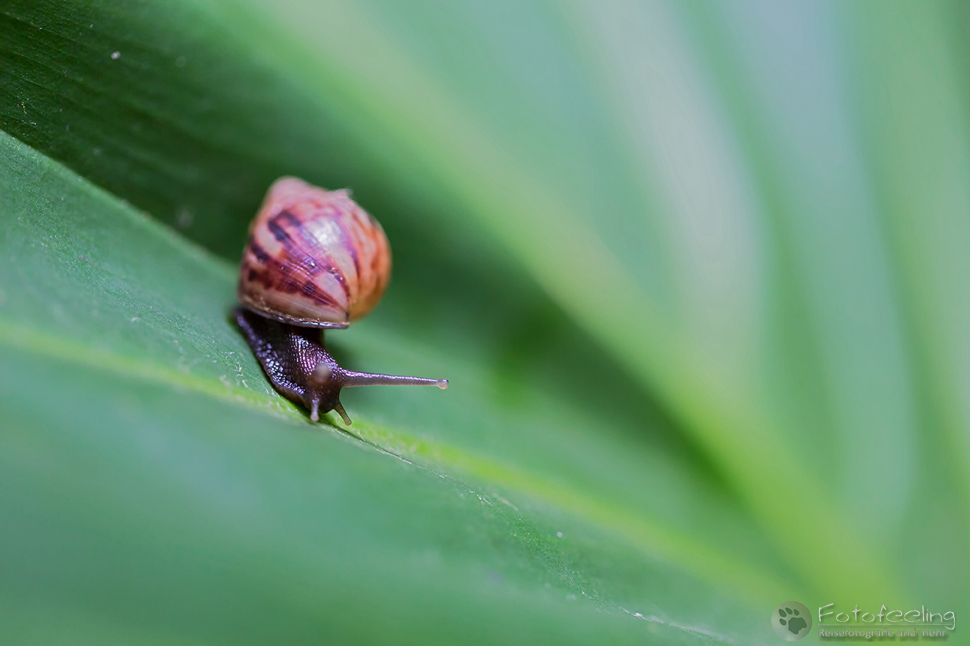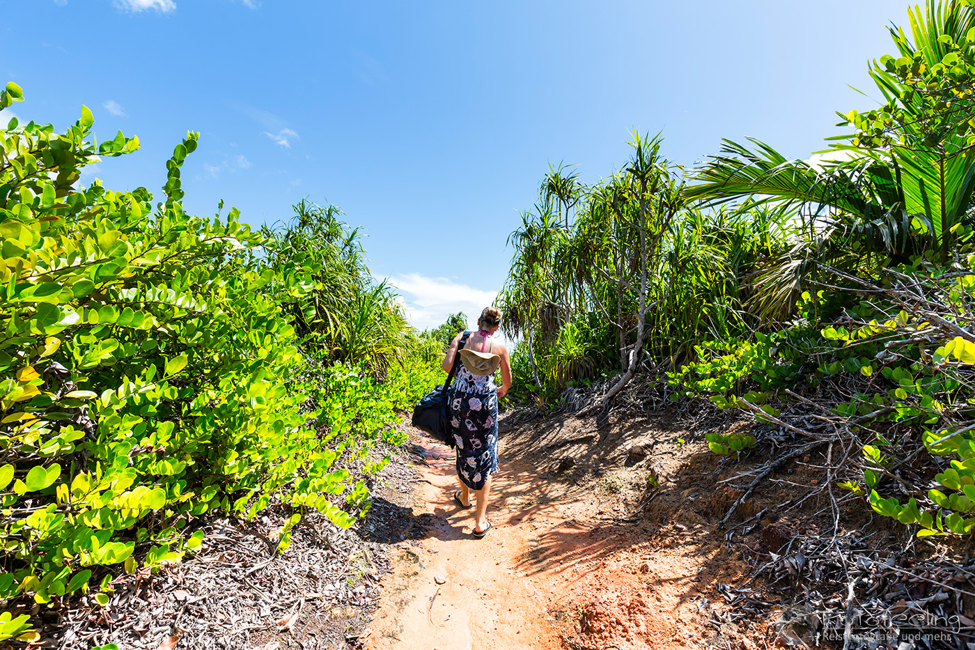Wir gingen weiter zu den zwei Stränden von Anse Lascars und genossen den Morgen für uns alleine, ehe wir uns auf den Rückweg machten. Es war schon sehr schwül, so dass wir pitschnass am Bungalow ankamen. Während ich duschte, ging Chris noch einmal an den Strand, um nach seinem verschwundenen Flip Flop zu schauen. Ich hatte wenig Hoffnung, doch Chris kam freudestrahlend mit seinem Schuh zurück, der noch dazu trocken und heile war. Wir stellten uns vor, wie er die ganze Nacht auf den Wellen geritten ist und am Morgen erschöpft am Strand ankam, um zu trocknen.