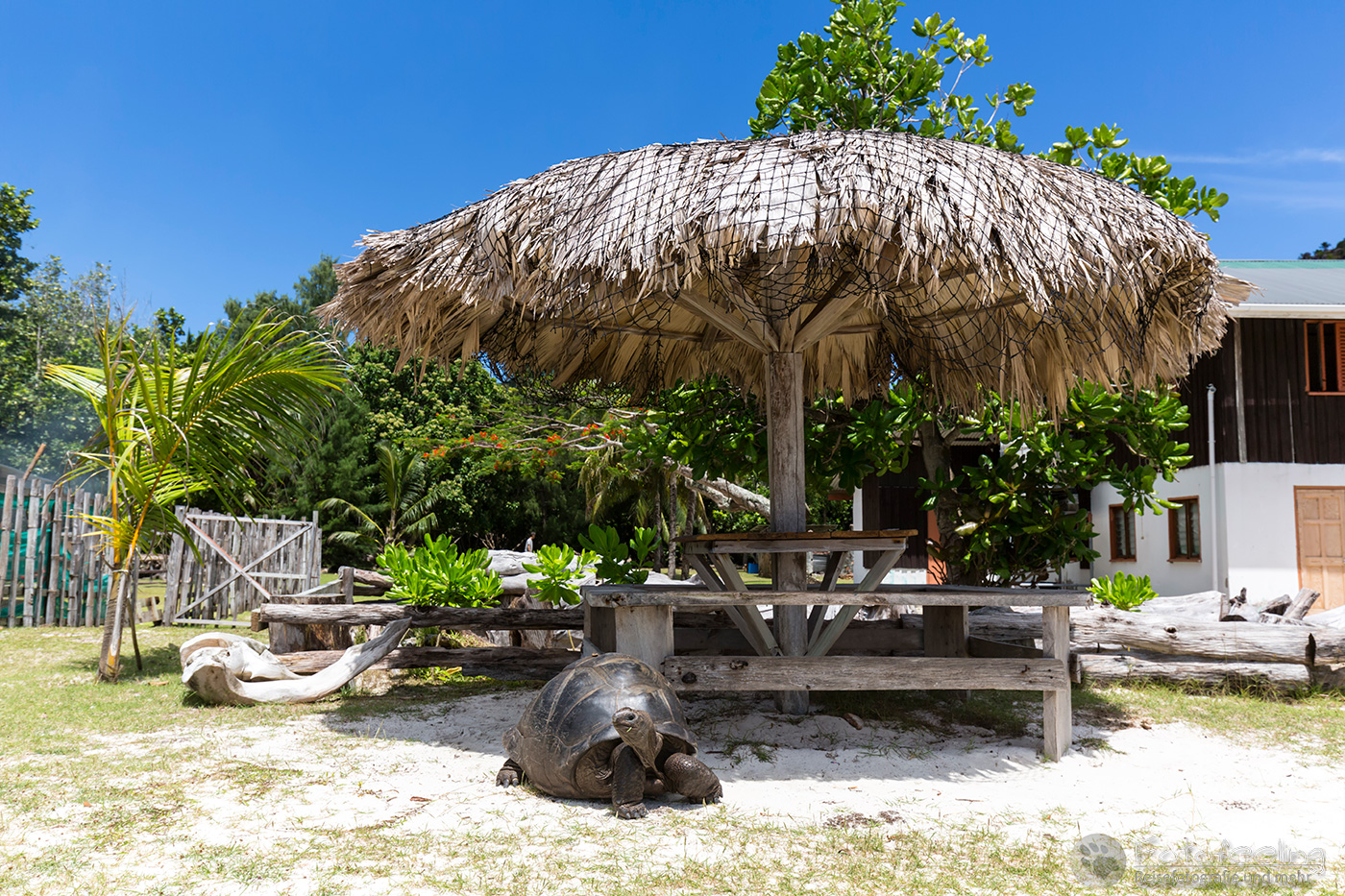 Ein schöne Yacht brachte uns die wenigen Kilometer nach Curieuse. Wir gingen an einem schönen Bade- und Schnorchelstrand ans Ufer. Gleich am Anfang schauten wir uns das Haus des Doktors an, denn auf der Insel lebten im 19. Jh. Leprakranke. Sie ist nur drei Quadratkilometer groß und besonders wegen der hier lebenden Seychellen-Riesenschildkröten bekannt.