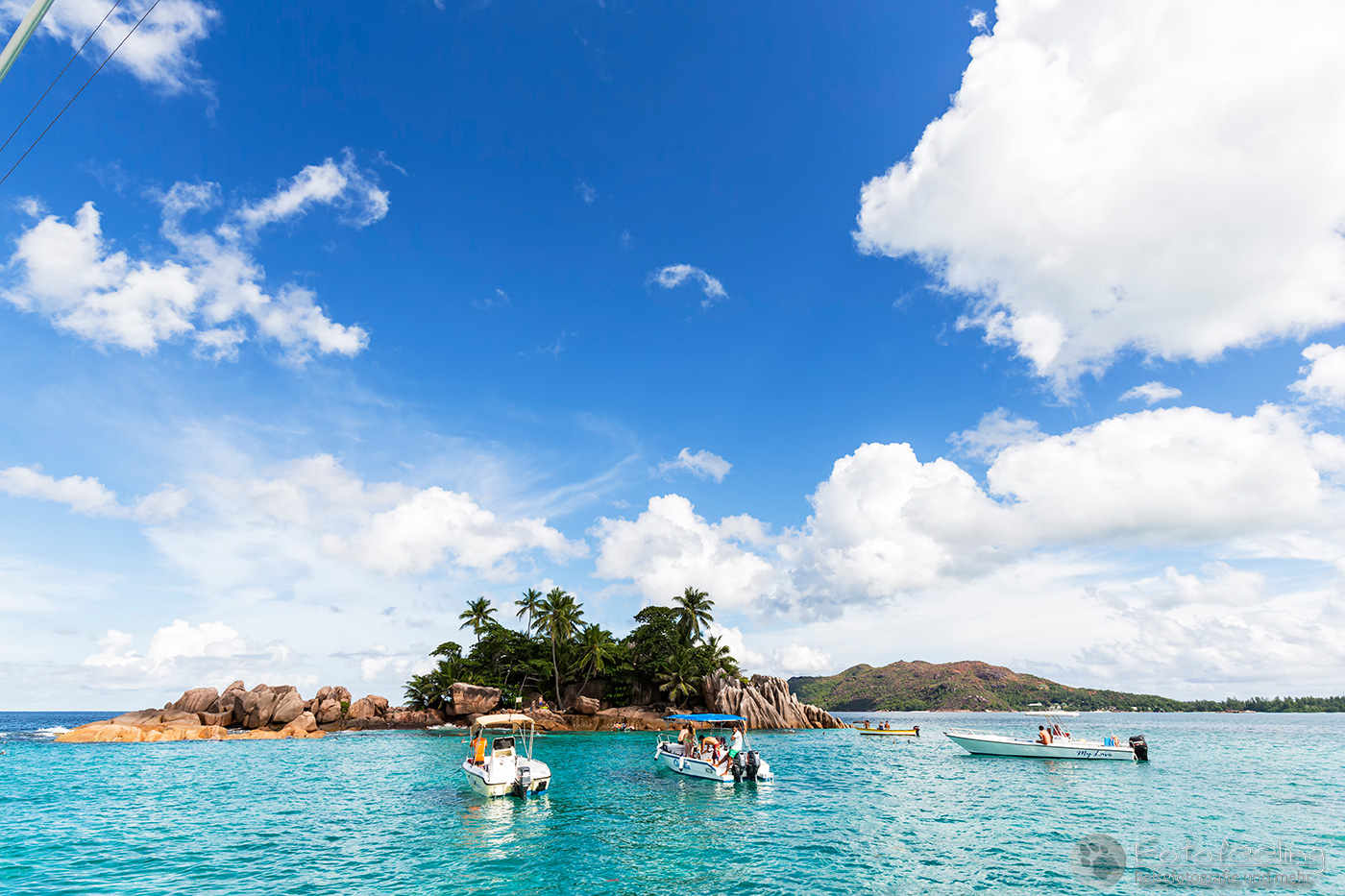 Die Fahrt nach La Digue ging schnell, sie ist ja auch nur ca. 6 km von Praslin entfernt. So waren wir in 15 Minuten dort und legten im Hafen von La Passe, dem Hauptort der Insel, an. La Digue ist ca. 5 km lang und 3 km breit und hat nur knapp 10 km² Durchmesser. Damit ist sie die kleinste der drei bewohnten Hauptinseln. Der Nid d'Aigles (Adlernest) ist mit seinen 333 m die höchste Erhebung der Insel. Ein Korallenriff umgibt sie fast vollständig