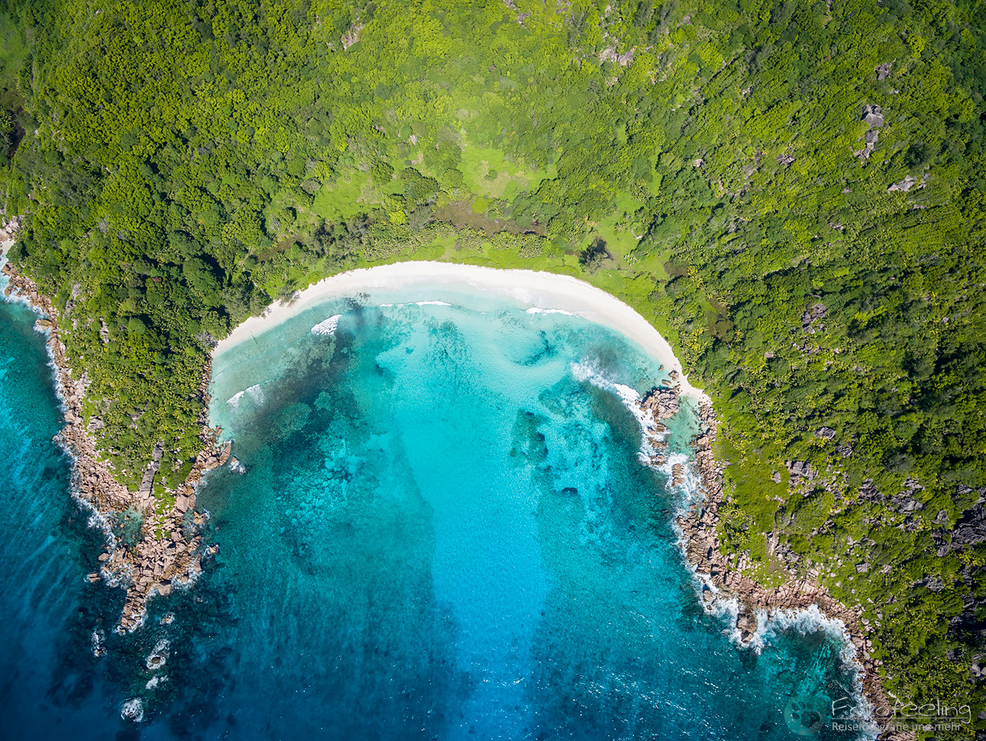 Mittags fuhren wir mit einem weiteren Kopter-Zwischenaufenthalt am Anse Volbert zurück zu unserem Bungalow, denn an diesem Tag hatten wir eine Zugangserlaubnis für den Anse Georgette um 15 Uhr.