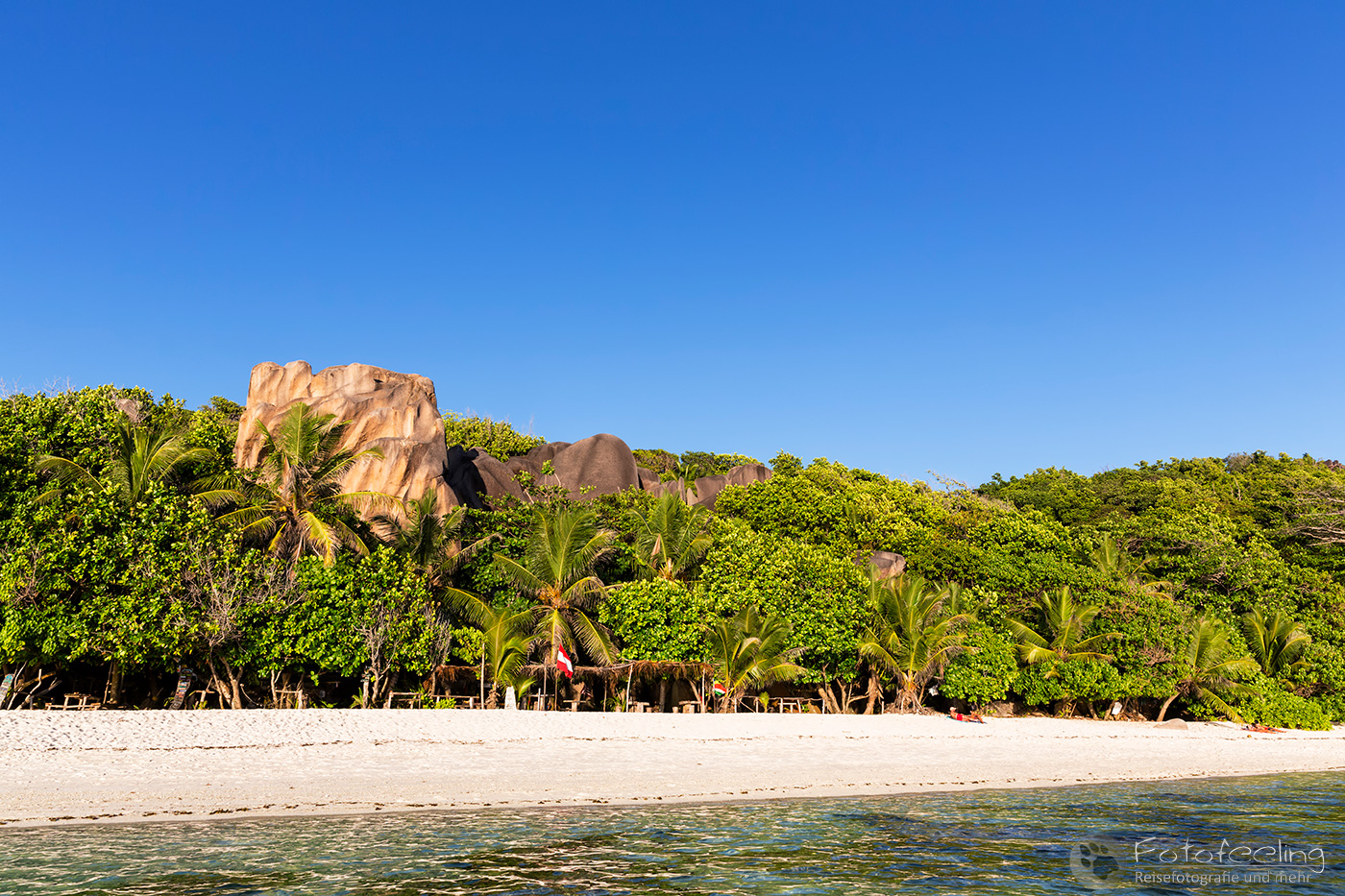 Der Rückweg ging deutlich entspannter, wenn auch nicht minder schweißtreibend zu. Am Grand Anse gönnten wir uns dann zwei sündhaft teure Dosen Cola an der Strandbar. Ich glaube, die Cola zischte als sie in unsere Kehlen floss.