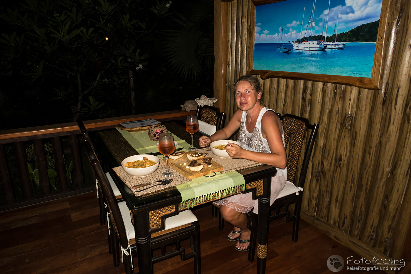 Manchmal ist es Liebe auf den zweiten Blick, so wie es uns hier mit Silhouette erging. Was anfangs so anders als Praslin oder La Digue war, erwies sich hier als zauberhaft. Erst sehnten wir uns ein wenig nach den Traumstränden der Nachbarinseln, um dann zu merken, dass es hier genauso traumhaft war. Es war wilder, rauer und romantischer. Oftmals erwarteten wir gleich einen Dinosaurier zu sehen, den wir in Miniaturform als Flughund wiedererkannten. Ein wahres Paradies ist diese einzigartige Insel für uns. Auch unsere kleine Villa war super schön und unsere Gastgeber verwöhnten uns mit exzellentem Essen, netten Gesprächen und einem Hauch von Luxus. Wir waren gerne da und wieder blieb ein kleiner Teil von uns zurück – bei mir sogar etwas mehr….