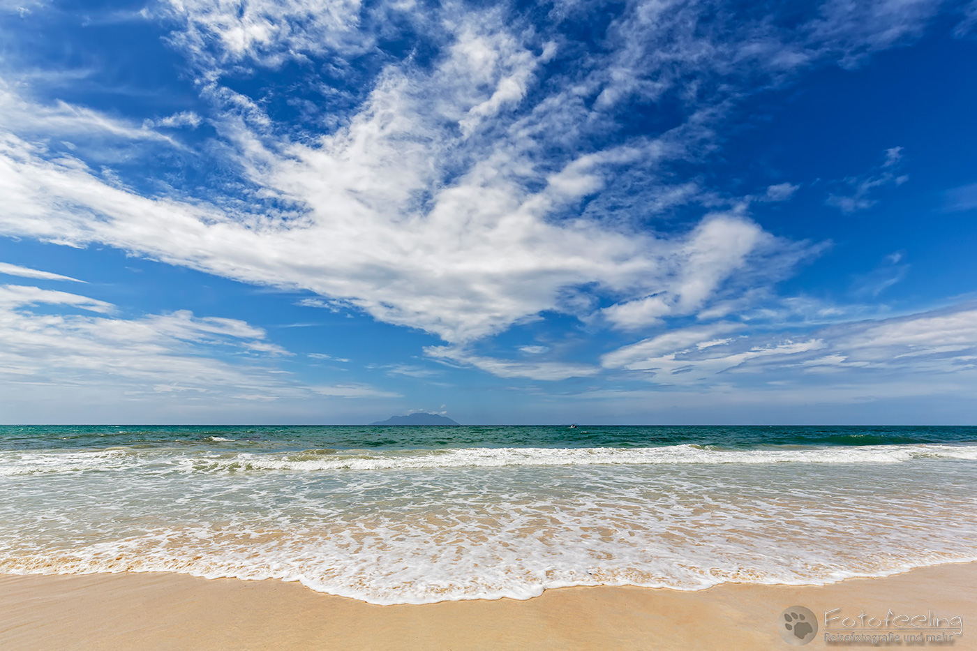Chris machte den Kopter startklar, während ich den Strand und die Einsamkeit genoss, denn außer uns war an diesem frühen Morgen noch niemand unterwegs. Wir badeten und beobachteten einen Schwarm Fische. Die Wellen waren etwas wilder, aber es war kein Problem, hier zu baden und Spaß zu haben. So verging die Zeit bis zum Mittag sehr schnell.