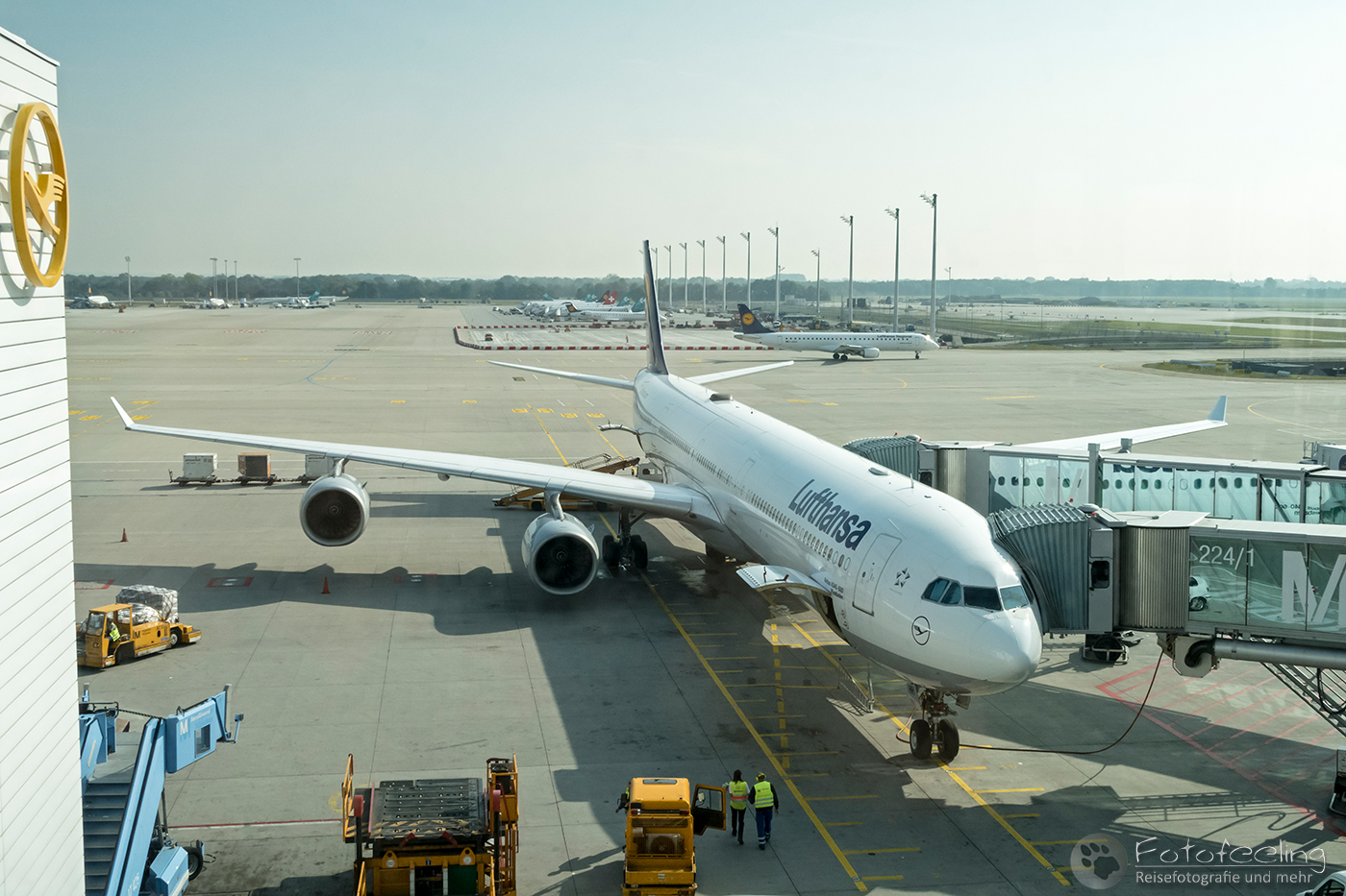 Da ich am Vorabend kein Ticket erhalten hatte, konnten wir unser Gepäck nicht am Automaten der Lufthansa aufgeben, sondern mussten zum Schalter. Hier stapelten sich mal wieder die Massen, aber es ging erstaunlich schnell. Die nette Dame von der Lufthansa wusste angeblich auch nicht, warum ich kein Ticket bekommen hatte und stelle mir ein aus.