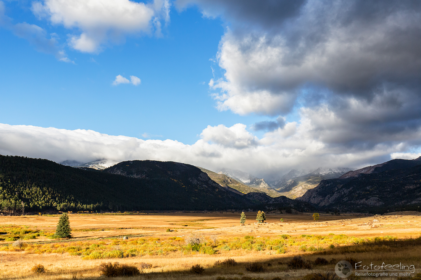 Um 16.00 Uhr waren wir schon unterwegs und rollten in Richtung Rocky Mountain Nationalpark, wo wir eine Campsite reserviert hatten. Das Wetter war super schön, die Sonne lachte vom Himmel und es war richtig warm bei gut 30 °C.