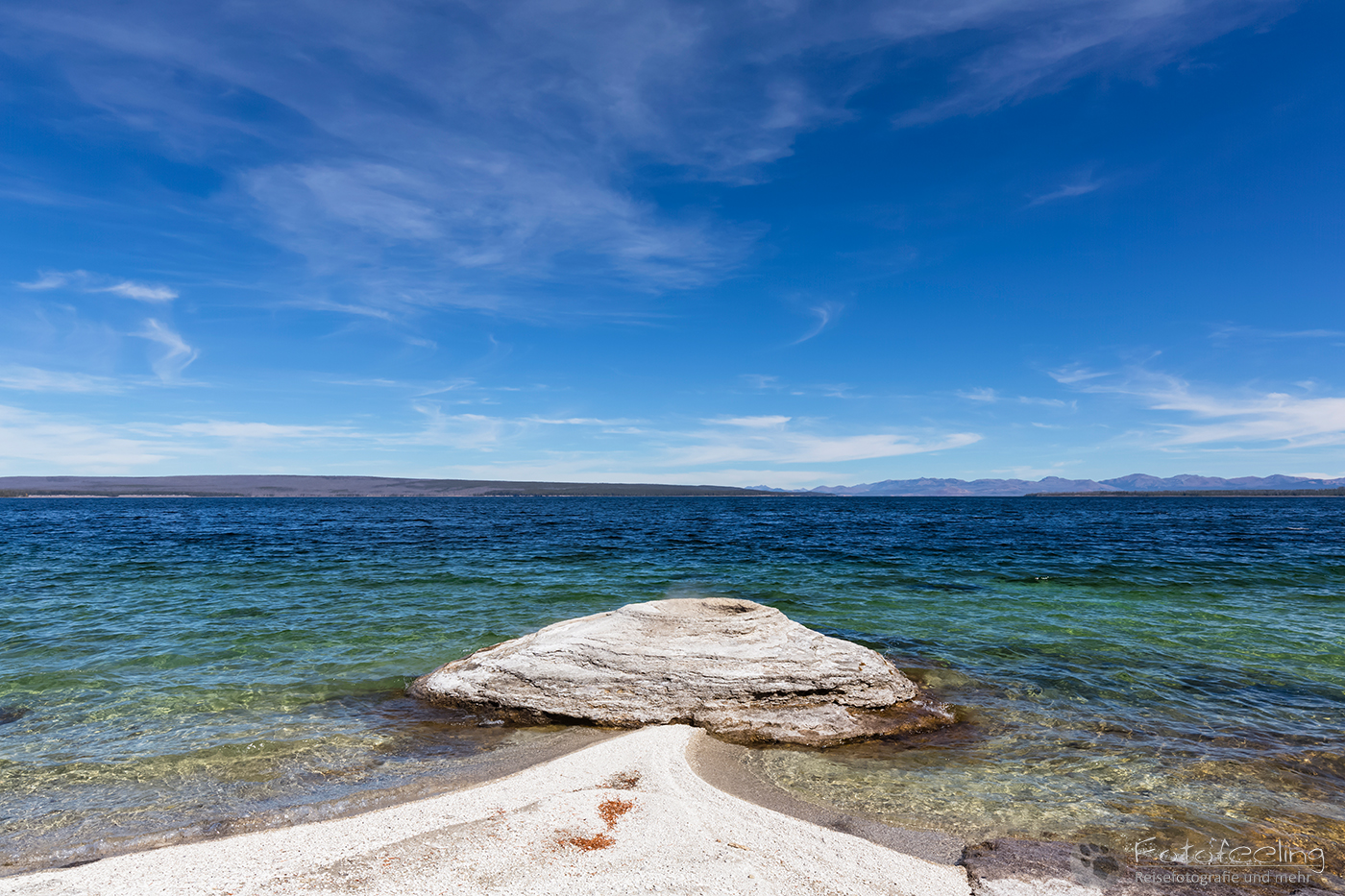 Doch die Menschen störten uns zum Glück nicht beim Betrachten der Geysire und so setzten wir unseren Weg fort vorbei an der Fishing Cone, dem Black- und dem Abyss Pool und waren wieder einmal sehr beeindruckt von den wunderschönen Farben der Pools. Aus Mudpools stiegen Blasen auf, Dampf zog in einer schmalen Fontaine gen Himmel und aus kleinen Löchern zischte und blubberte es. Das Wetter war gut und in der Sonne war es richtig warm, wenn auch am See ein kühler Wind wehte.