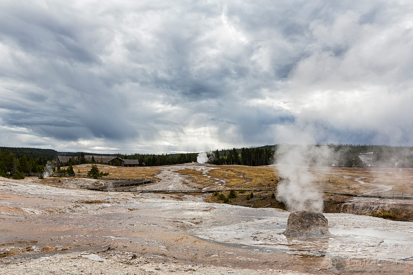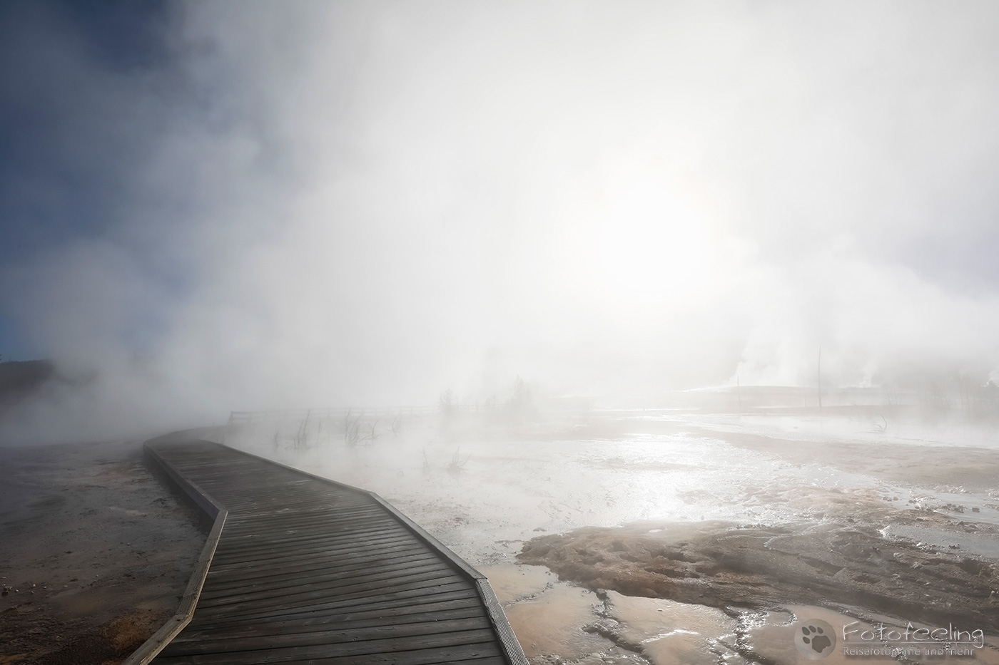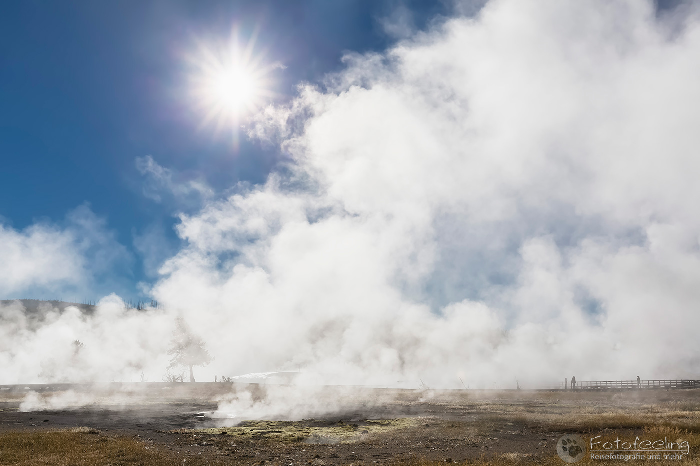 Nachdem er sich beruhigt hatte wanderten wir weiter über das Stegsystem zum Old Faithful zurück und damit zu unserem Auto.