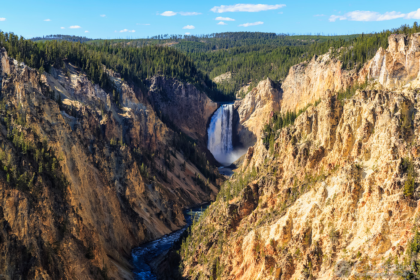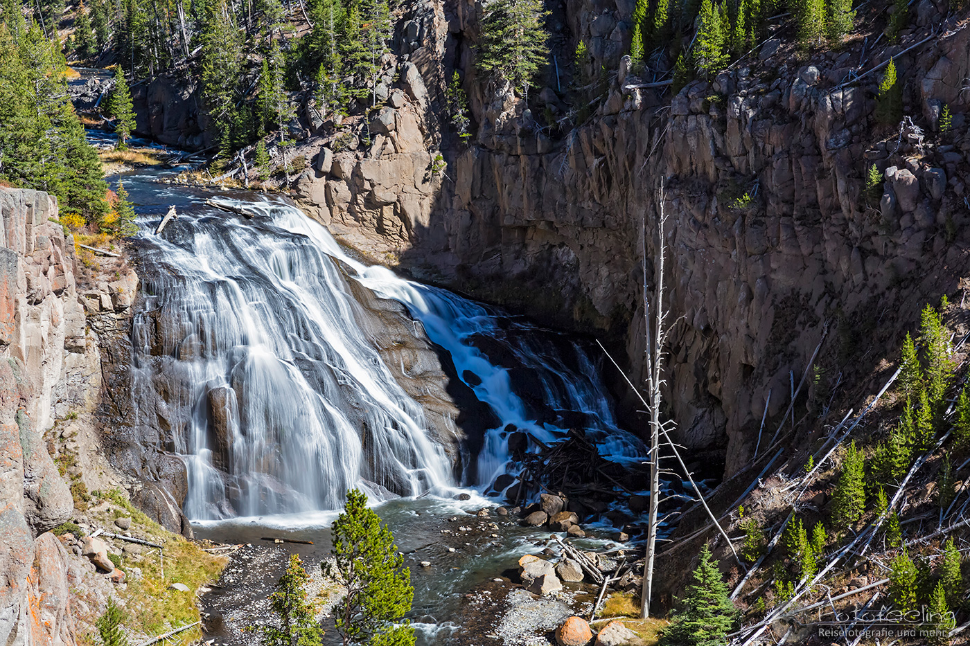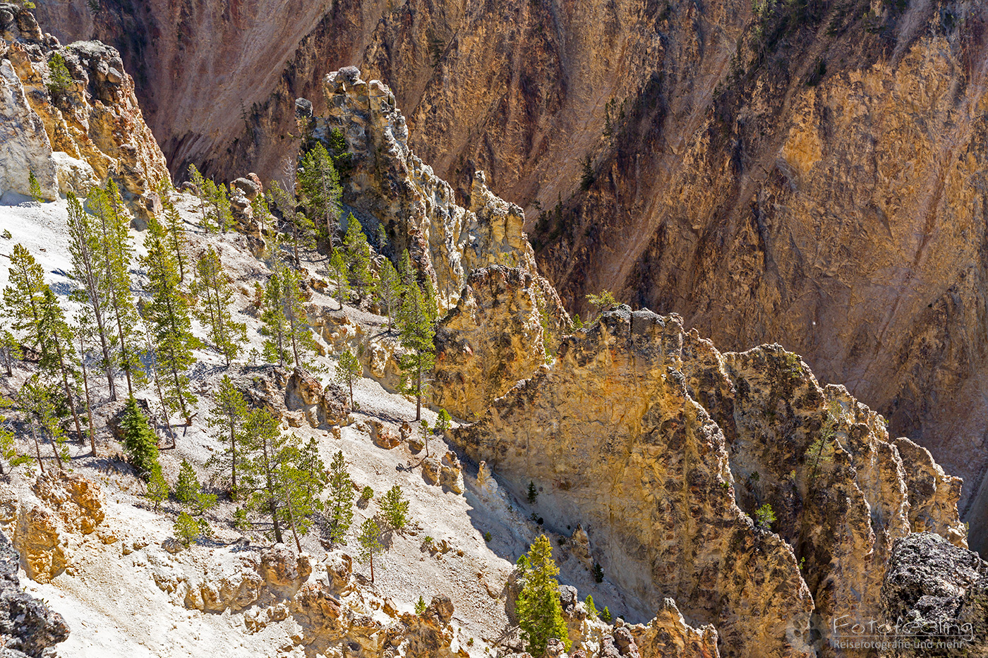 Am späten Vormittag fuhren wir einige Aussichtspunkte am Grand Canyon of the Yellowstone ab. Die V-förmige Schlucht ist zwischen 250 m - 400 m tief und 500 -1300 m breit. Sie durchfließt der Yellowstone River.