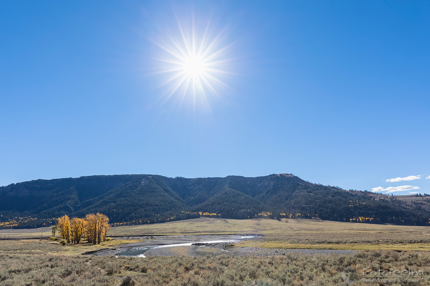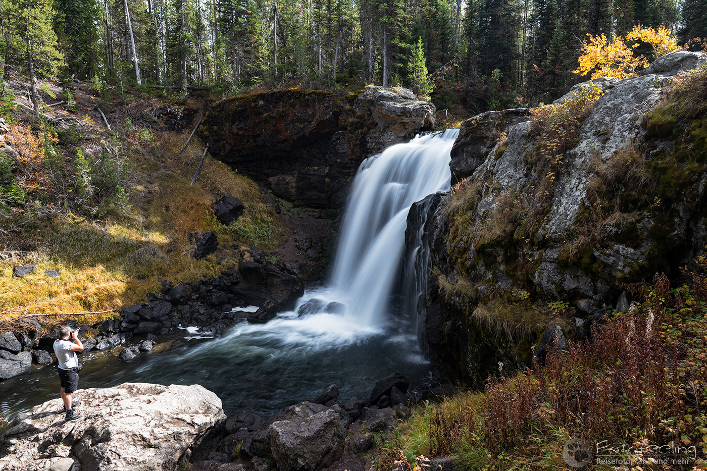 Bei milden 2 °C standen wir an diesem Morgen auf. Während der Kaffee kochte, bauten wir unser Zelt ab, denn heute hieß es, Abschied nehmen vom Yellowstone Nationalpark, der uns trotz der vielen Menschen nicht enttäuscht hatte. Während Chris das Frühjahr vorzieht, fand auch ich den Hebst hier super schön, zumal das Wetter klasse war.