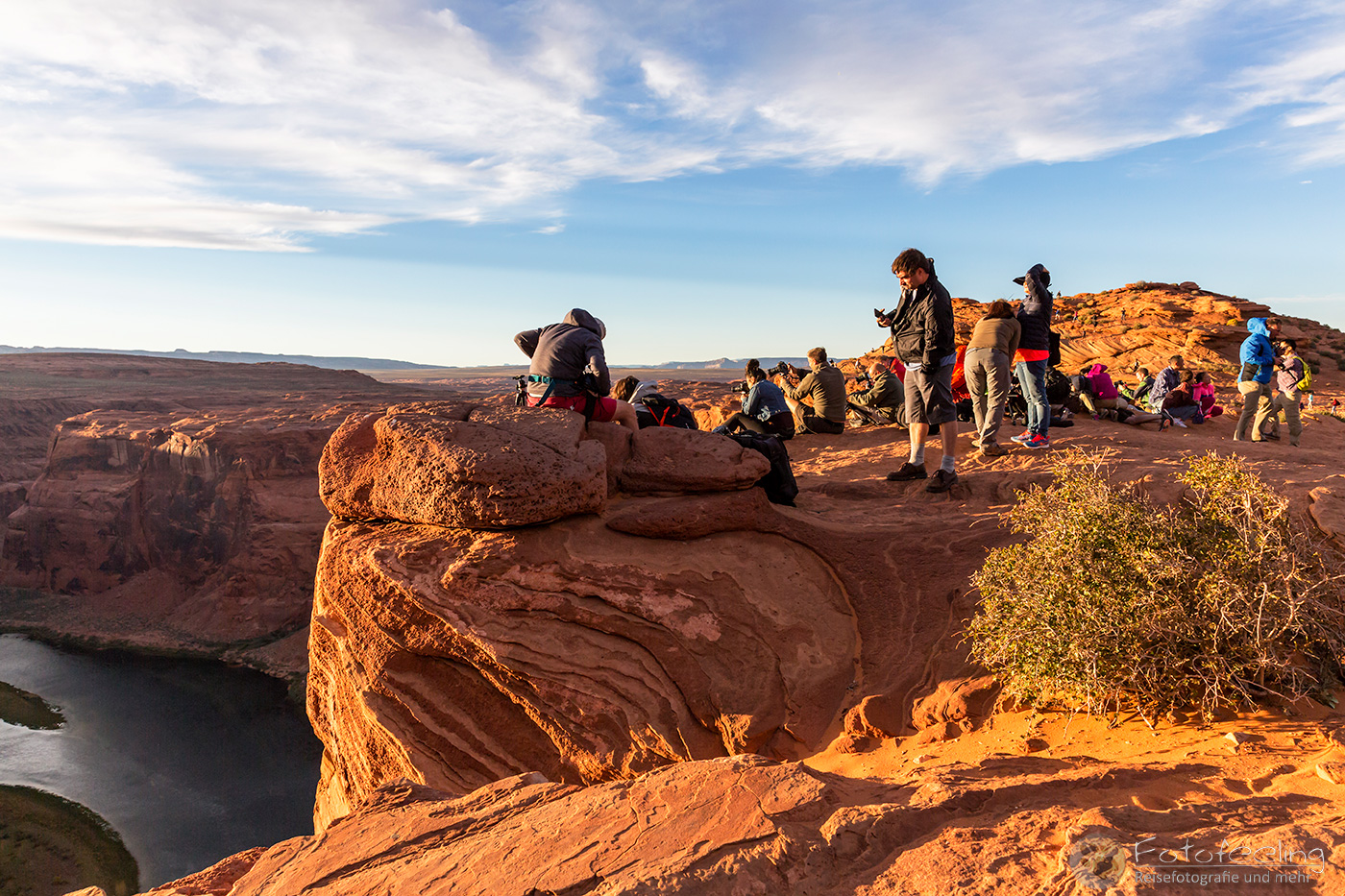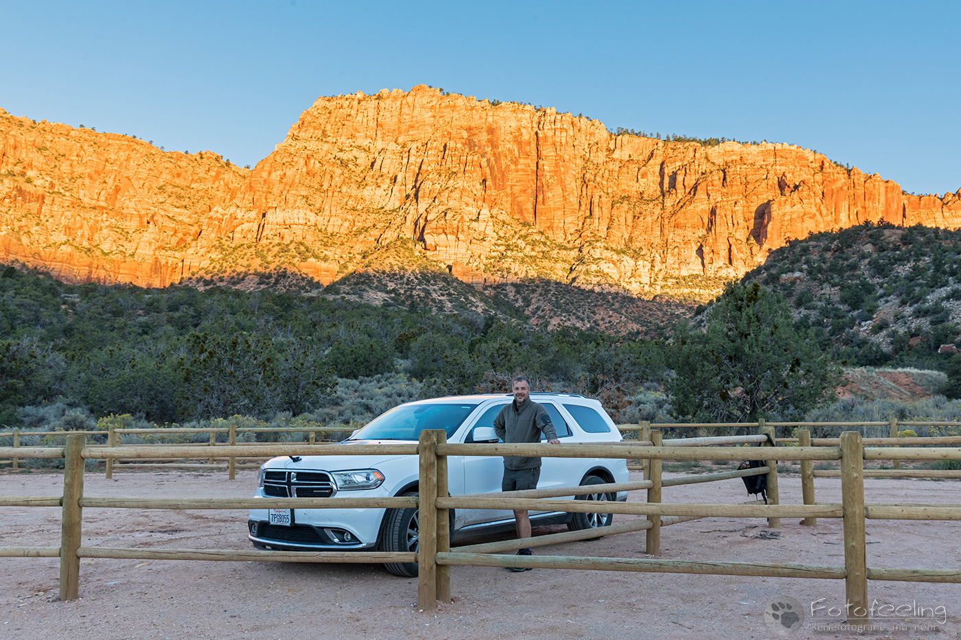 Über Nacht war es noch einmal so richtig kalt geworden und so standen wir bei frischen - 4 °C auf. Zum Glück kochten wir uns einen Kaffee, der in unseren Thermobehältern erstaunlich lange warm blieb und stellten die Heizung auf Maximum. Leider hatten wir ein dummes Problem, denn wir konnten unsere Innenbeleuchtung nicht abstellen. Egal was wir probierten, das Licht blieb an. So fuhren wir hell leuchtend Schwabacher Landing entgegen, wo wir den Sonnenaufgang verbringen wollten. Wir waren wirklich sehr früh dran, aber der Parkplatz war schon voll. So bekamen wir den allerletzten Platz an der Seite und schüttelten ungläubig die Köpfe. Was war denn hier los?