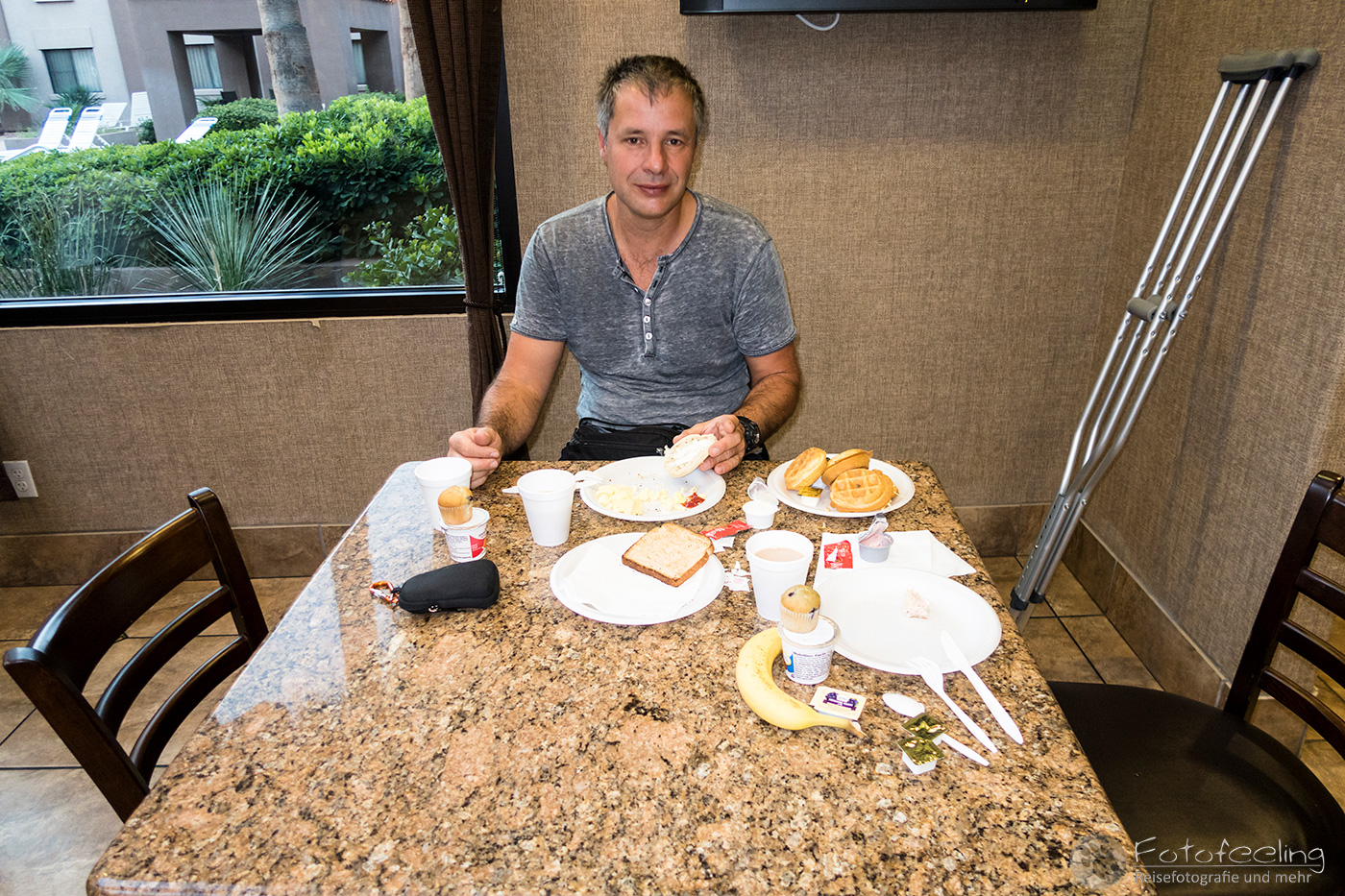 Nachdem wir uns das Frühstück im Hotel angeschaut hatten, beschlossen wir uns unterwegs einen Kaffee und etwas zum Essen zu kaufen, denn das Essen war, wie in fast allen amerikanischen Hotels, nicht unser Ding.