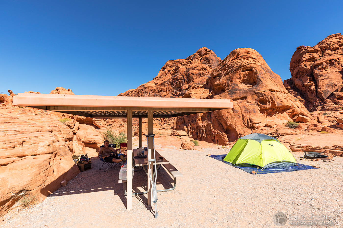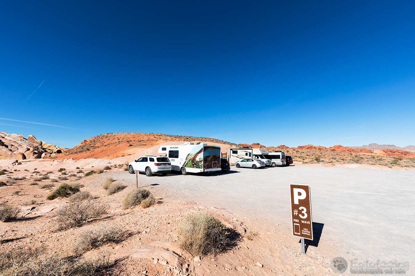 Nachdem das Zelt stand, gingen wir wieder zurück zum Auto, denn wir wollten ja noch bezahlen, aber auch mittags war niemand vor Ort. Wir suchten den kleinen Supermarkt auf und kauften uns ein Snickers-Eis, das wir uns im Schatten schmecken ließen. Auch hier sahen wir wieder Warnschilder für Klapperschlangen, aber bei der Hitze gab es sicher nur gegrillte Schlangen. Da wieder niemand am Häuschen war, fuhren wir ohne zu bezahlen in die Dünen hinein. Chris erkundigte sich extra noch einmal bei den Rangern vom Visitor Center, aber auch die Damen wussten keinen Rat und meinten, dass wir höchstens am nächsten Tag eine Verwarnung am Auto hätten und dann bezahlen könnten.