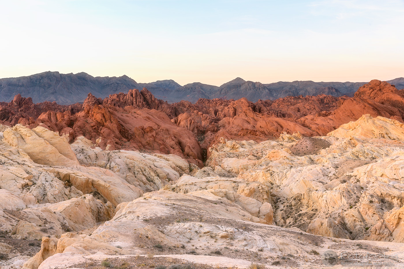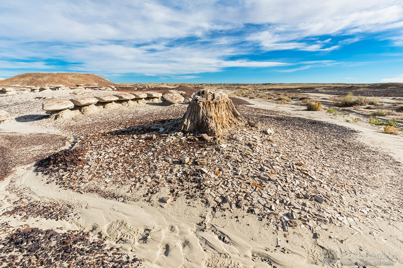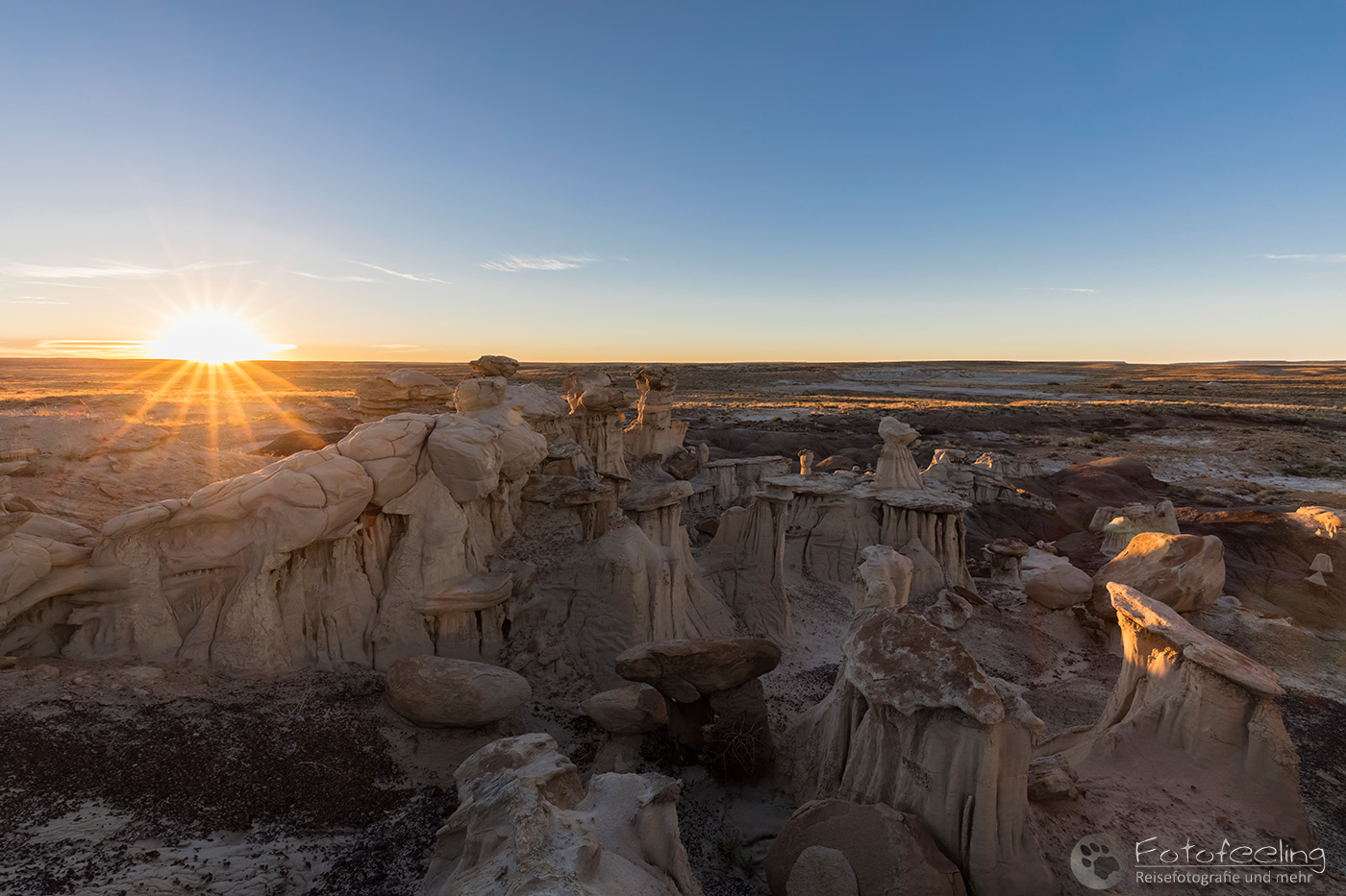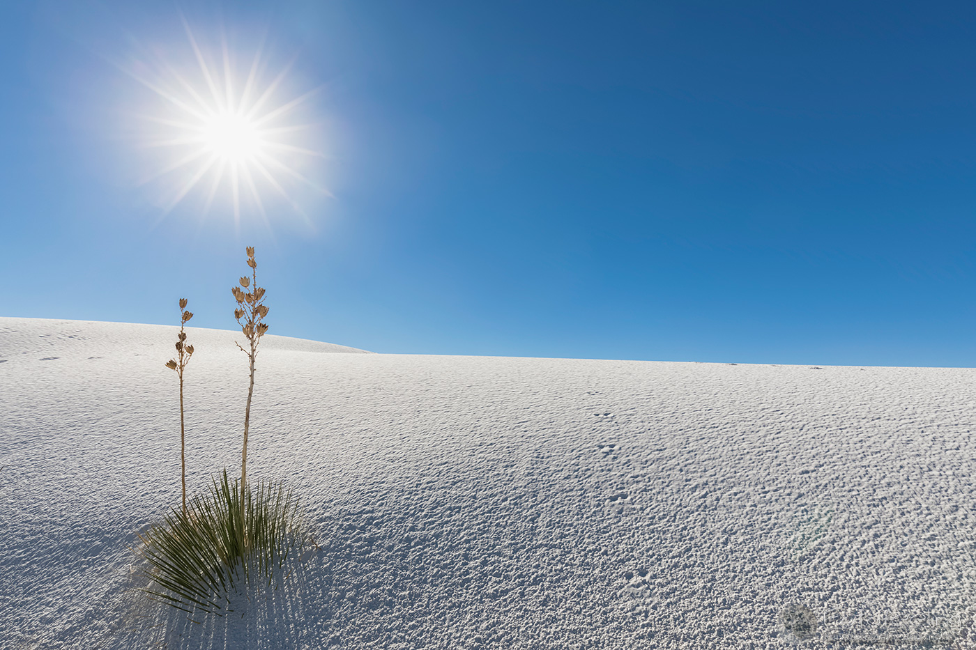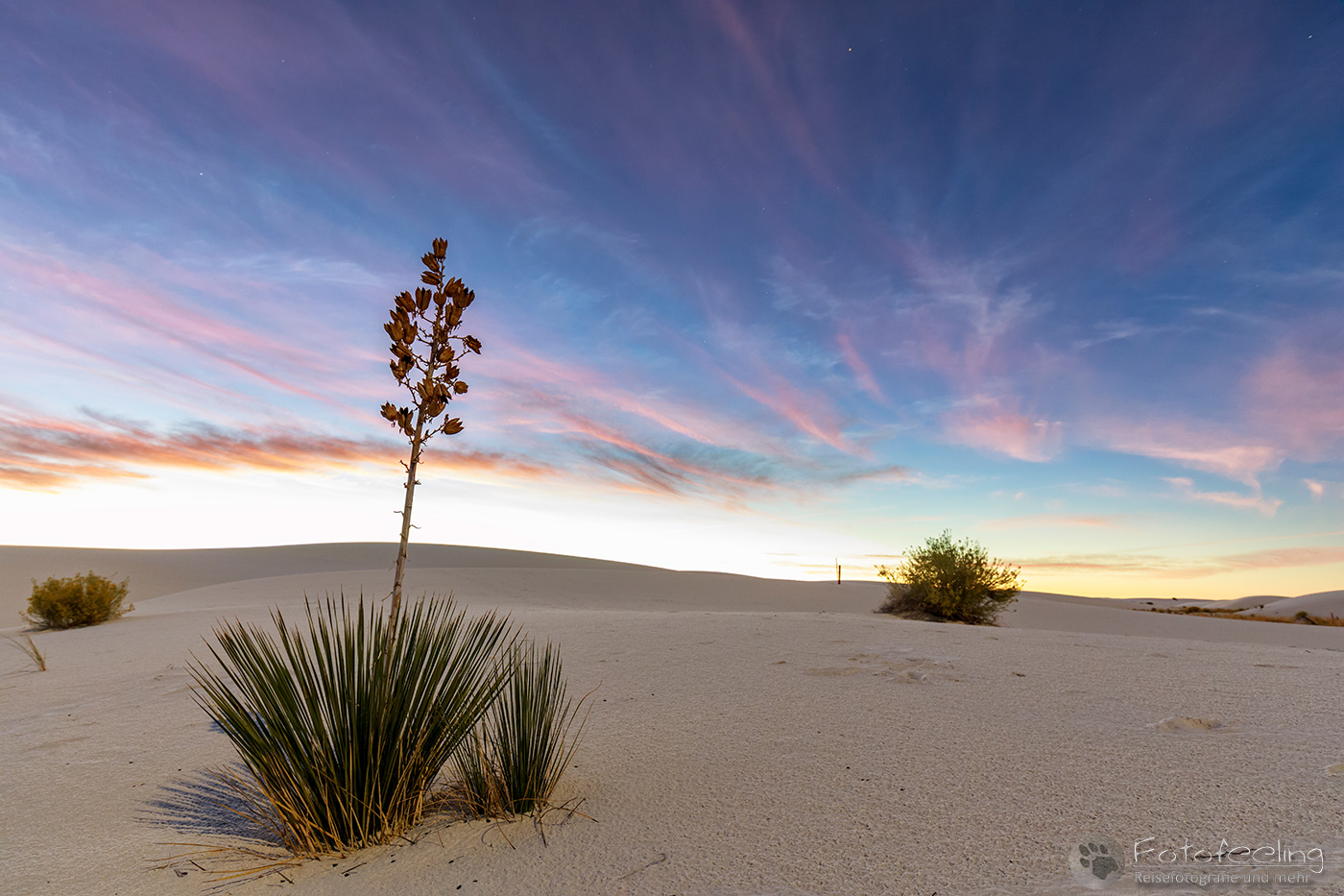Da das Visitor Center erst um 9.00 Uhr öffnete, fuhren wir schon mal vor ab in die Dünen und fotografierten im Morgenlicht ein paar Seifen-Palmlilien (Soap Tree Yucca) und Sandstrukturen.