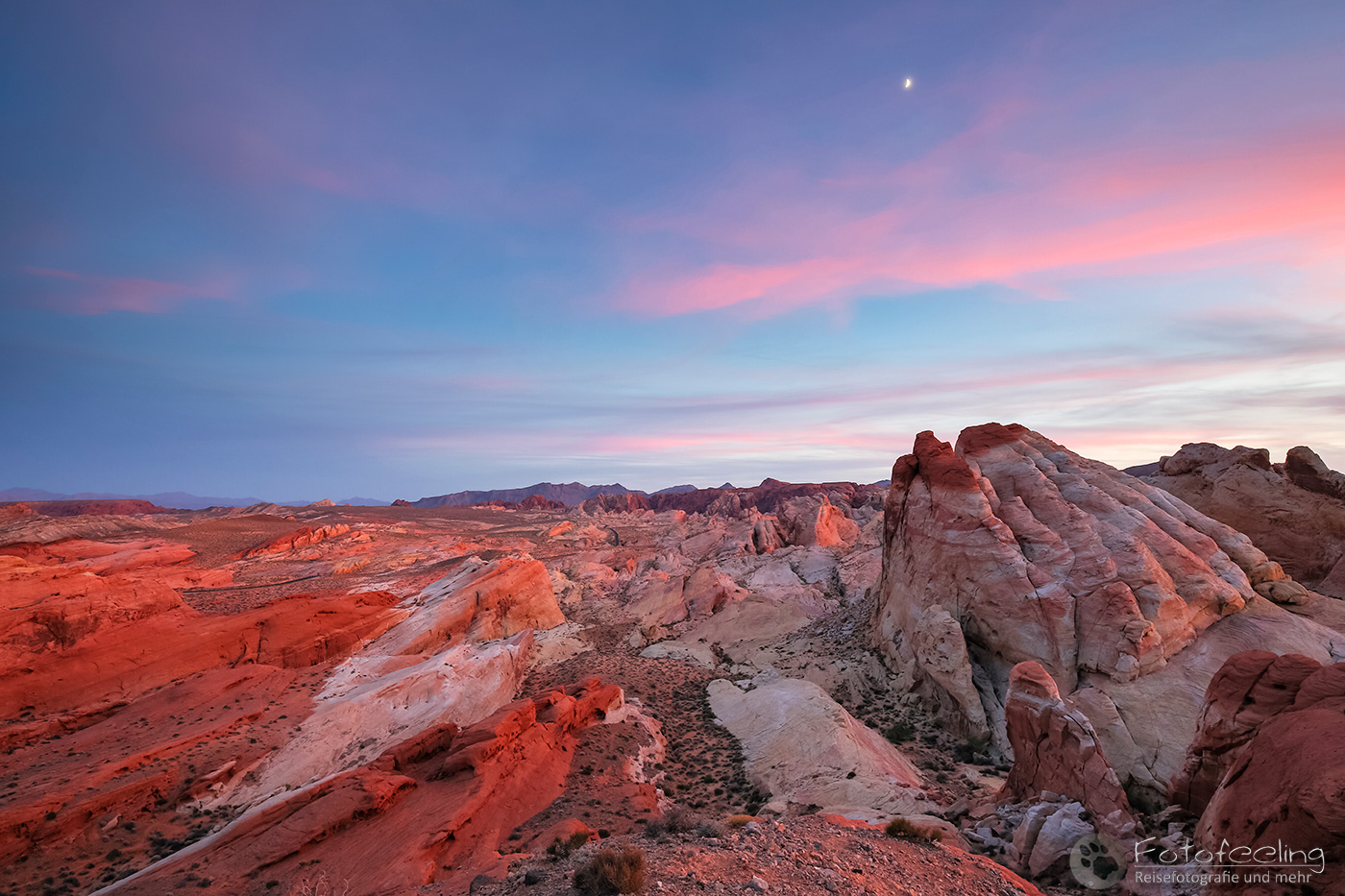 Zum Sonnenuntergang holte Chris uns ein kaltes Getränk und wir genossen das Schauspiel auf einem Dünenrücken. Im lauen Wind verschwand die Sonne hinter den Bergen und der Erdschatten kam heraus. Wir saßen im Dünensand und waren absolut zufrieden.