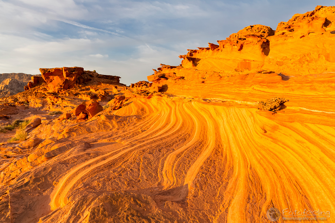 Am Zelt luden wir die nächste Ladung Gepäck ab. Diesmal hatten wir unser Abendessen und Getränke dabei. Chris hatte extra eine Tüte mit Eis mitgenommen, damit uns die Getränke nicht kochten. Doch vorerst liefen wir durch die Dünen auf der Suche nach dem besten Motiv. Das war gar nicht so einfach, denn viele Dünen waren relativ flach oder hatten kaum Struktur. Dafür waren die Täler zwischen den Dünen voll mit vertrockneten Pflanzen. Trotzdem war es einfach klasse. Ab und zu donnerten Düsenjets über uns hinweg und wir sahen sogar einen Jeep der Armee.