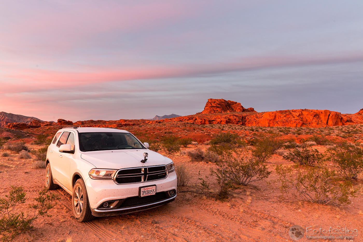 Ein Bus brachte uns zu Alamo, unserem Autovermieter. Auch dort hatten wir einen echt netten Mitarbeiter. Chris fragte nach einem Upgrade und er machte uns einen guten Preis für die nächst bessere Autoklasse, denn unser gebuchter Standard SUV sah ziemlich klein aus und darin wollten wir ja die nächsten Wochen campen. Chris hatte eh schon „Herzaugen“ und nur noch Blicke für den hübschen weißen Dodge Durango, während die anderen zwei Standardwagen unbeachtet auf dem Parkplatz standen. So entschieden wir uns für das einzige verfügbare Auto der besseren Kategorie, der gerade frisch gewaschen blitzblank vor uns stand und uns zuzublinzeln schien.