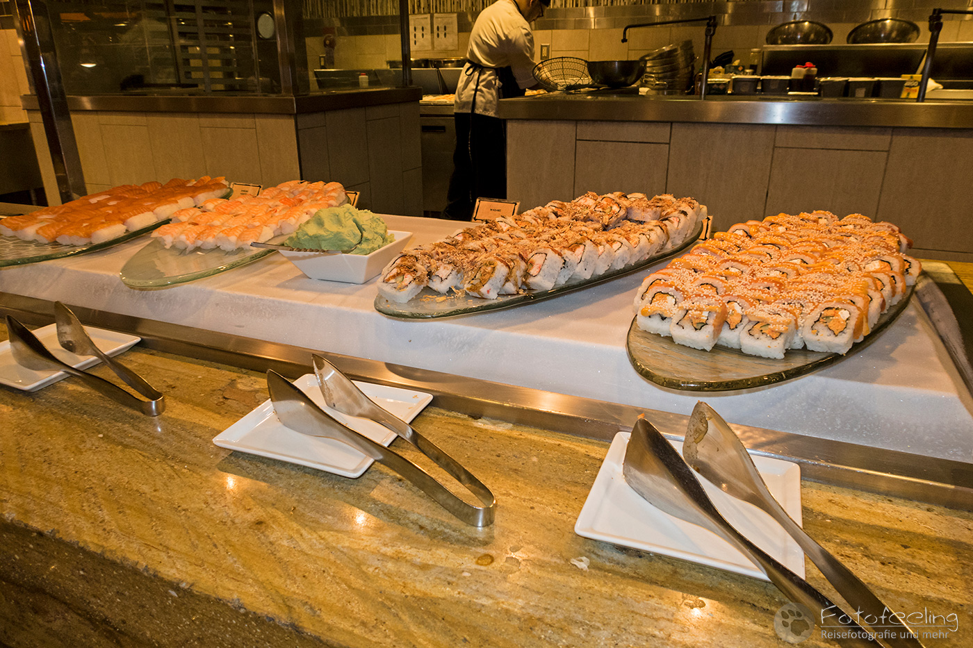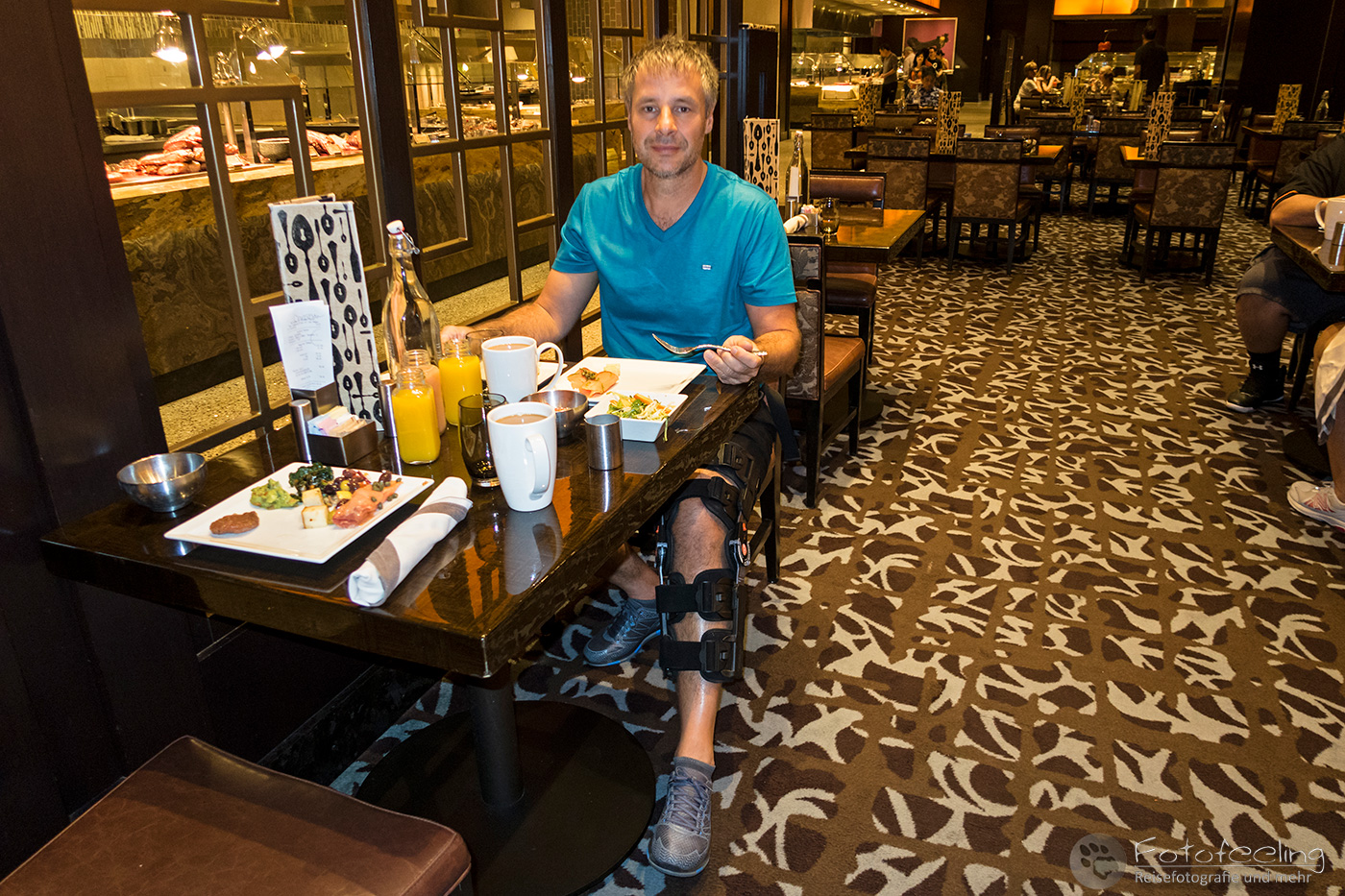 Das Hotelfrühstück war wider Erwarten recht gut. Es gab neben dem obligatorischen Toastbrot frisches Obst, Joghurts, Omeletts, Schinken und guten Kaffee.
