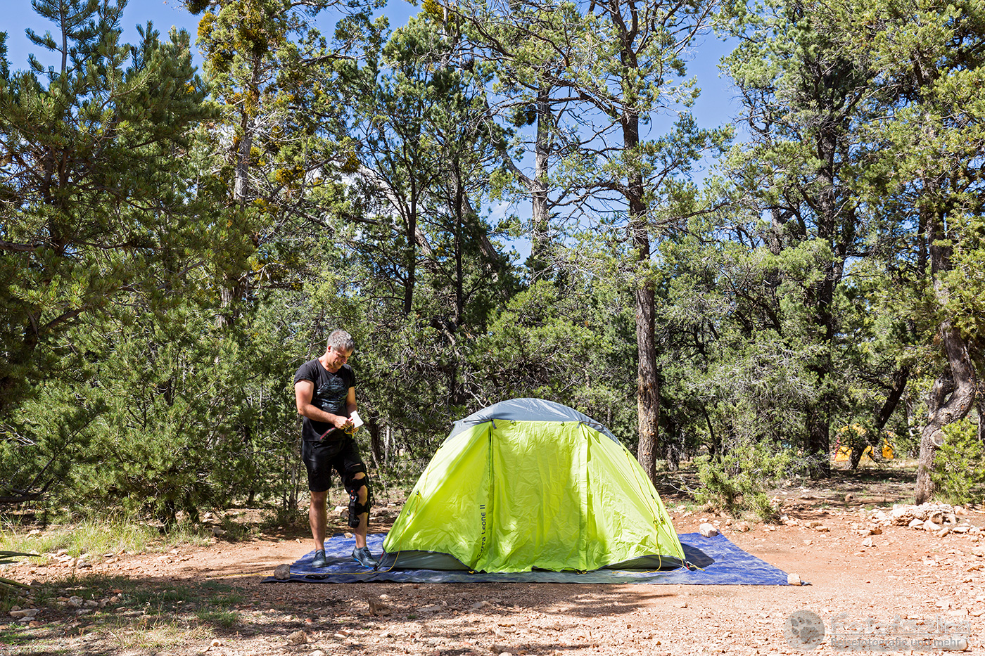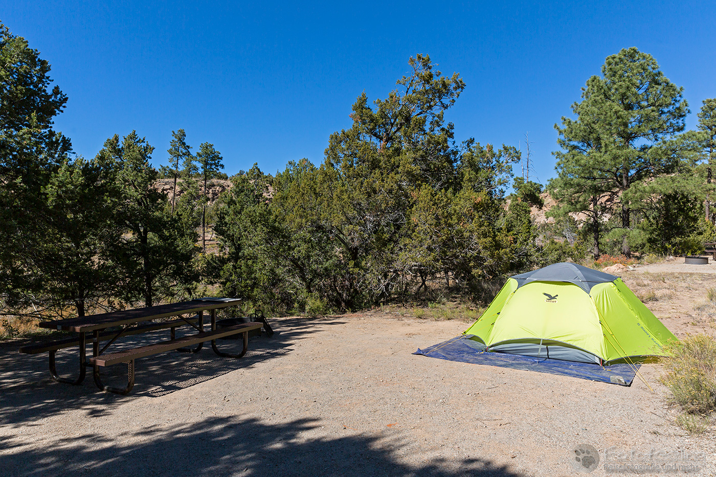 Mittags kamen wir im Bandelier National Monument an, wo wir uns eine schöne Campsite auf dem Juniper Campground im B Loop aussuchten und unser Zelt aufbauten und Brotzeit machten.