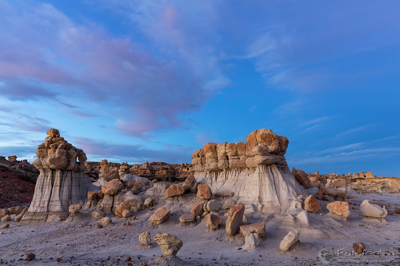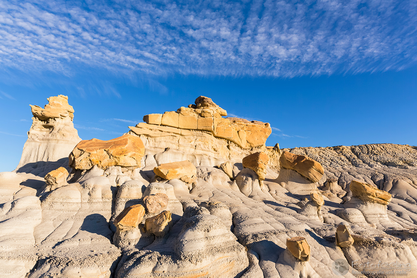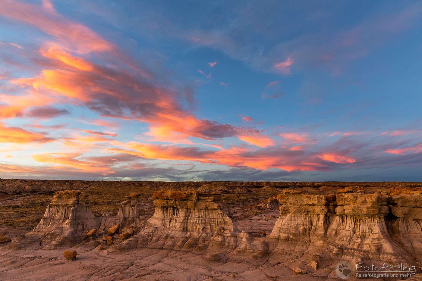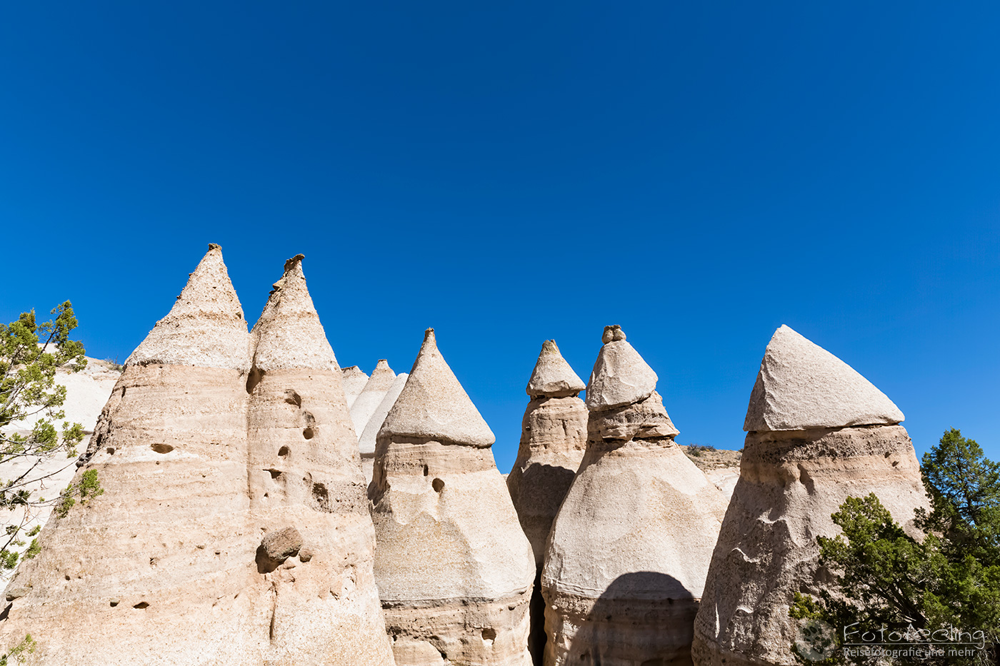 Dann machten wir uns auf den Weg. Wir passierten die legendäre Westernstadt Sante Fee und vorher noch den Rio Grande. In einem tollen Supermarkt füllten wir unsere Vorräte auf, eher wir zu dem Kasha-Katuwe Tent Rocks National Monument in New Mexico kamen. Hier findet man bizarre Felsformationen aus vulkanischem Gestein, die durch Erosion des weichen Gesteins geformt wurden.