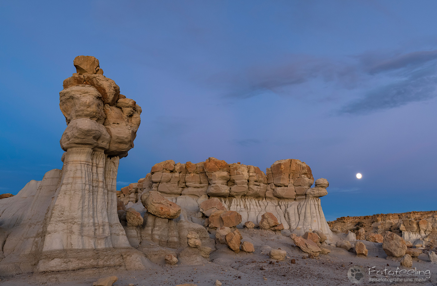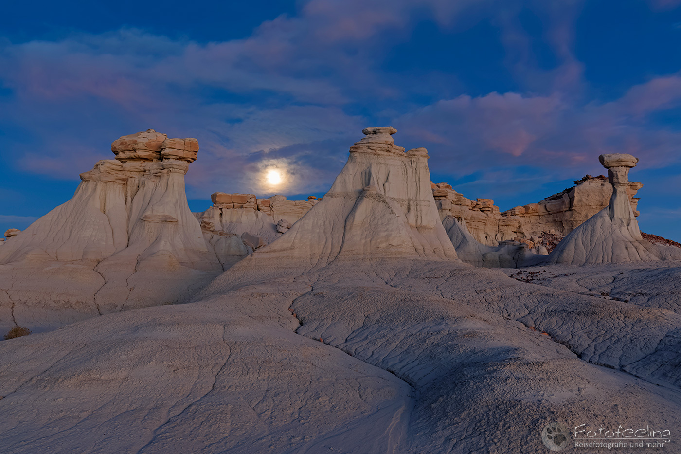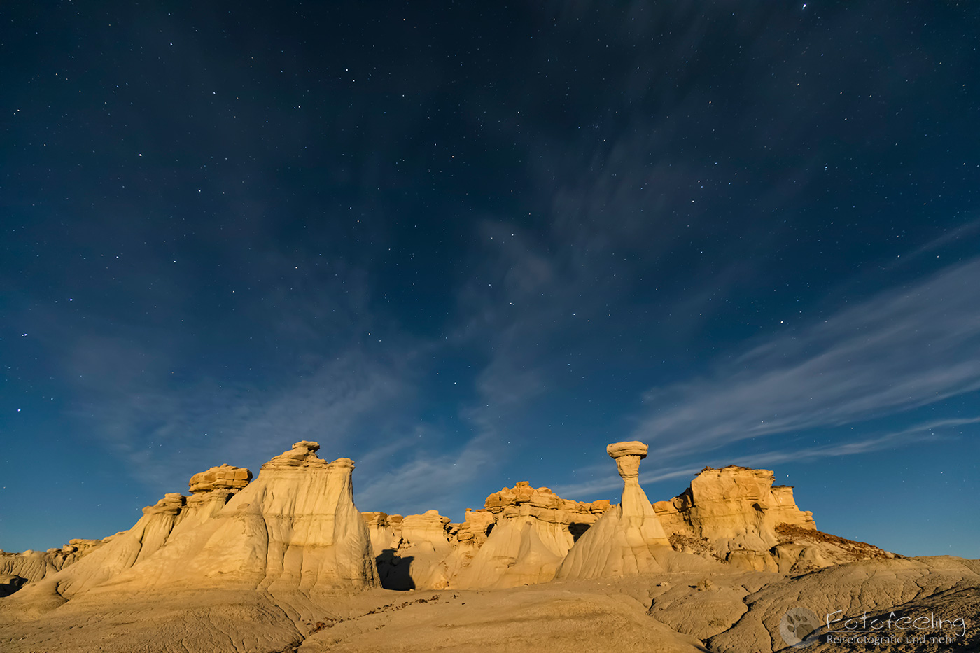 Natürlich ging Chris mitten in der Nacht noch einmal los, als der noch immer volle Mond heraus kam und die Yucca nebst Dünen beschien.