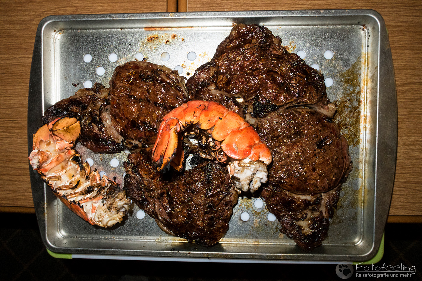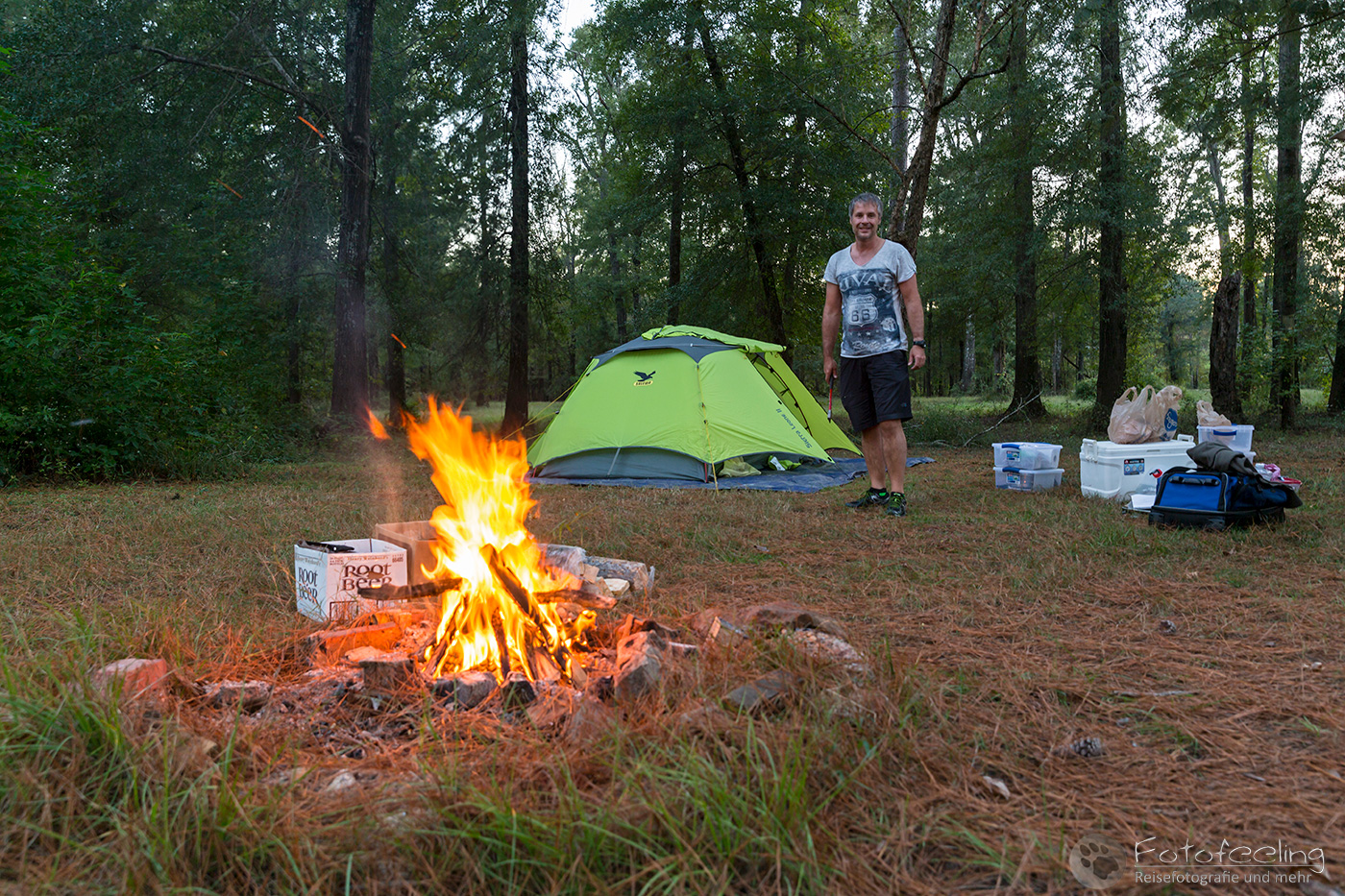 Auf der Campsite grillten wir noch Buffalo Steaks. An diesem Abend blieb es erstaunlich mild bei ca. 10-12 °C, so dass wir noch etwas länger am Feuer sitzen blieben.