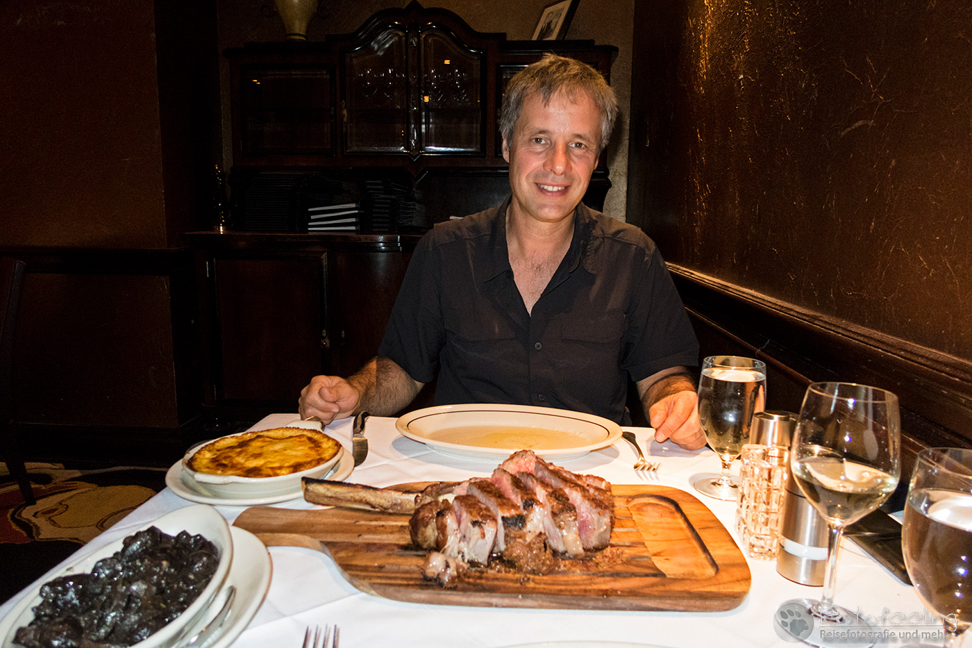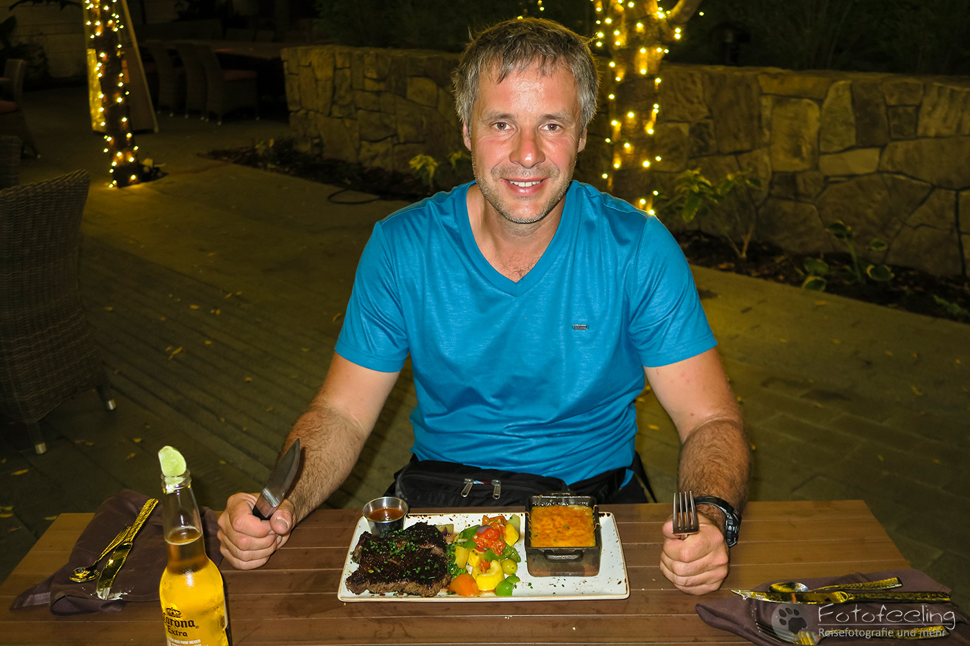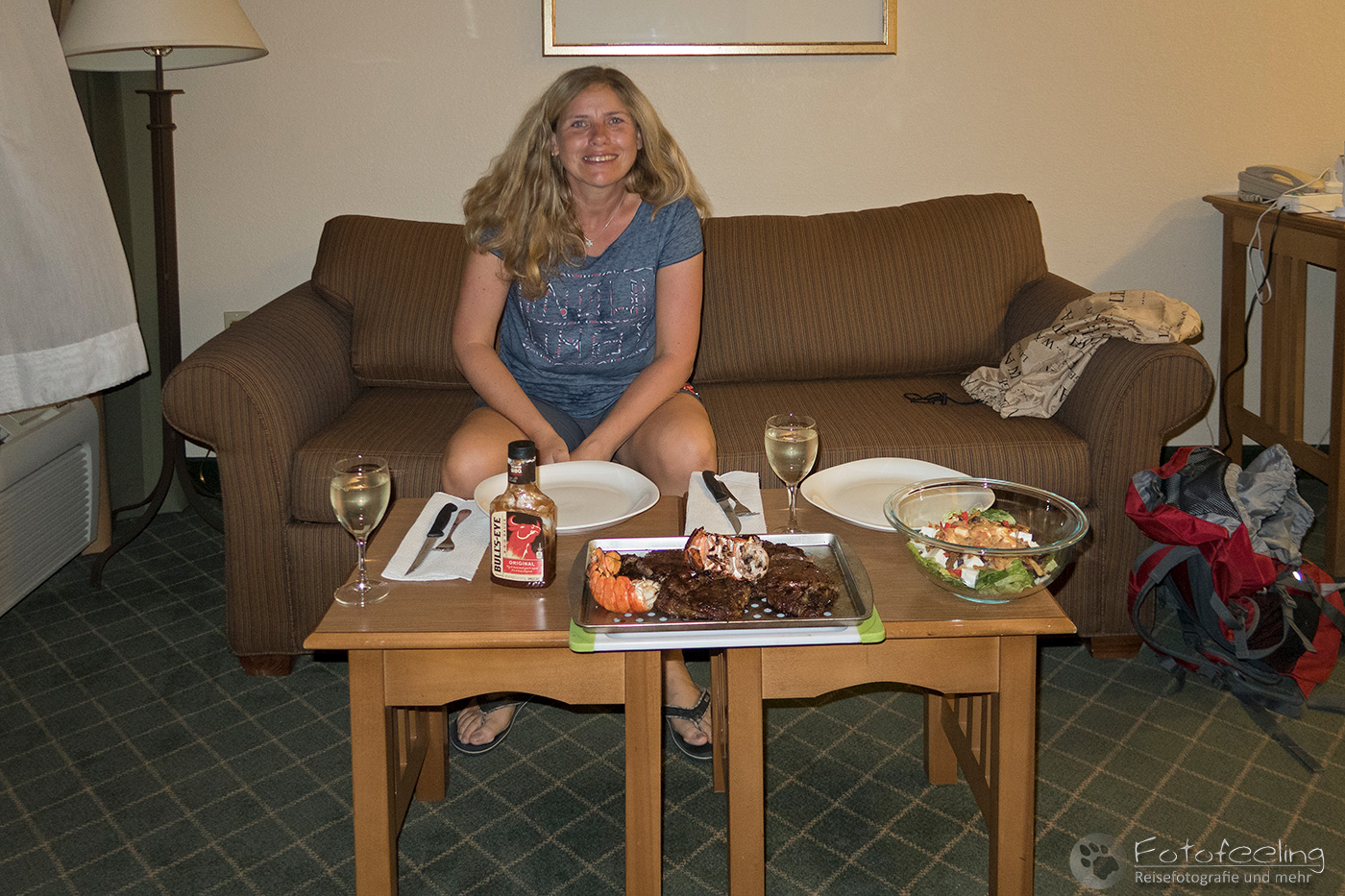Abends gingen wir super gut essen und Chris bekam endlich sein riesiges Texas Steak. Dazu ließen wir uns leider auch noch Vorspeisen und Beilagen schmecken und so gingen wir mehr als nur satt wieder raus, heilfroh, dass wir zu Fuß unterwegs waren und somit noch eine Runde gehen mussten.