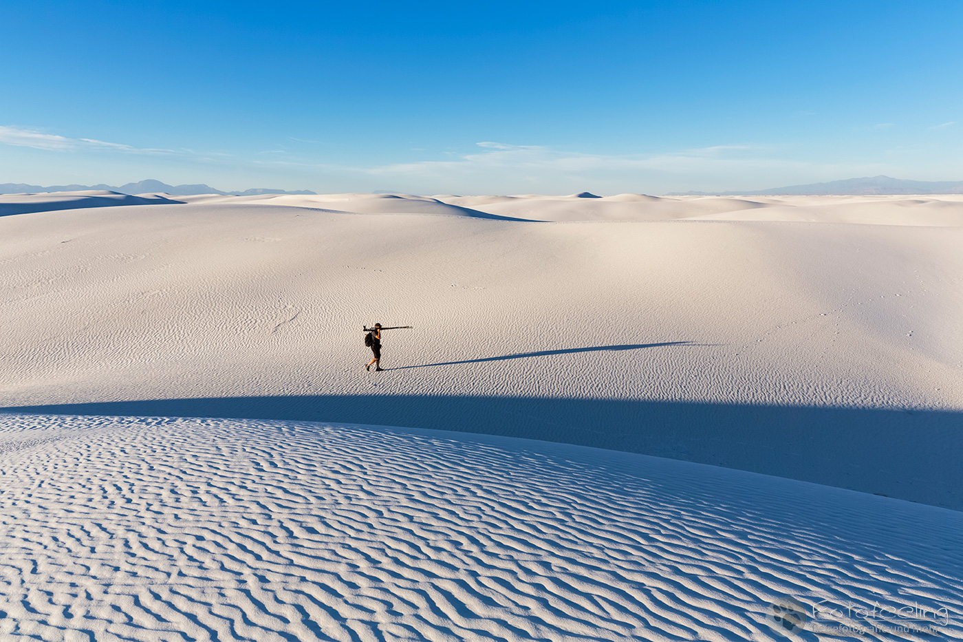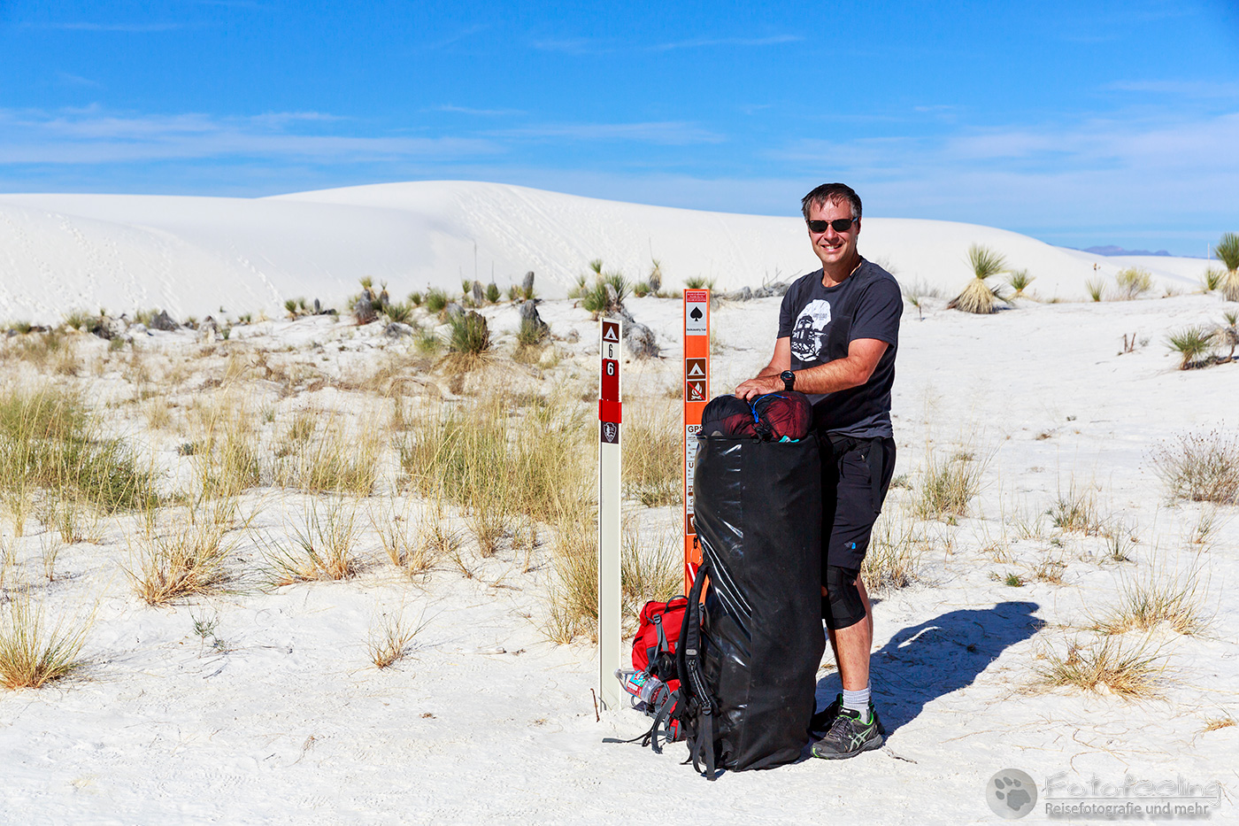 Auf dem Weg zur Campsite mussten wir immer wieder Pause machen und die tollen weißen Dünen fotografieren. Ohne Sonnenbrille wären wir hier blind geworden, so sehr strahlte der Gipssand. Wir trugen alles in die Dünen und bauten unser Zelt auf. Wir freuten uns total auf diese Nacht in den Dünen und die Abkühlung, denn an diesem Tag wurde es richtig heiß.