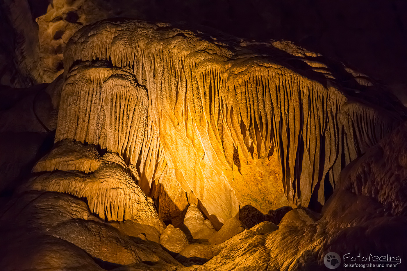 Zum Glück begegnete uns unterwegs ein Ranger und sagte, dass es in der Haupthöhle noch schöner werden würde, sonst wären wir vermutlich heute noch damit beschäftigt fasziniert zu staunen und Bilder vom Eingang zu machen. Besonders schön war das Wal-Maul, eine riesige Halbhöhle mit wie Zähnen ausschauenden Kalksteingebilden.
