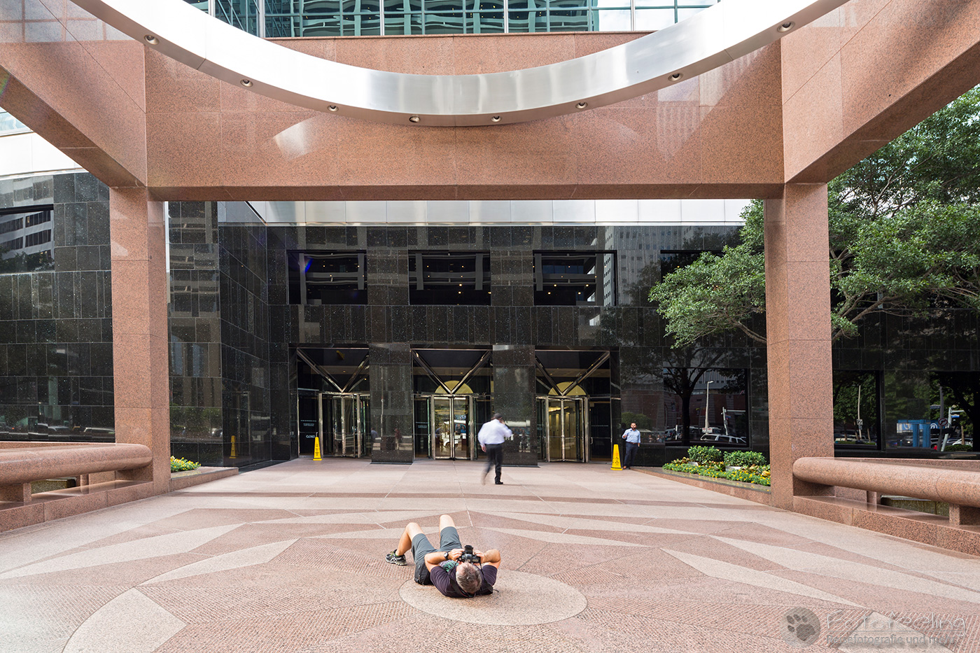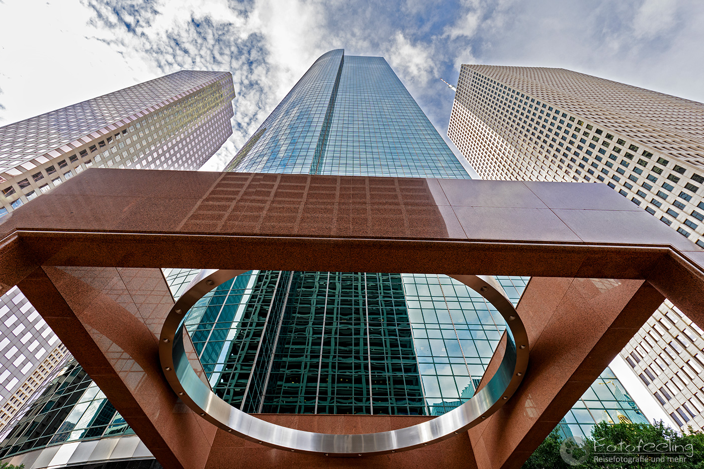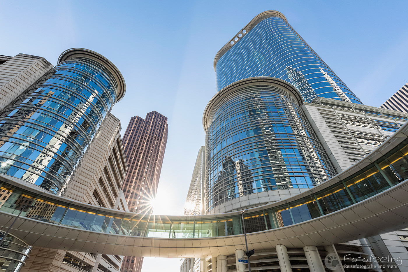 Nachmittags waren wir zurück in Houston und liefen noch einmal durch die Hochhäuser der Stadt. Chris war voll in Aktion, schmiss sich auf den Boden und machte Bilder, während ich so tat, als gehöre ich nicht dazu. Besonders hatte es ihm das Chevron Building in der Smith Street angetan, das er ausgiebig von allen Seiten und Perspektiven ablichtete. Ich setzte mich derweil in den Schatten und betrachtete das Ganze mit etwas Abstand. Die Hochhäuser hier waren wirklich beeindruckend und dieses Gebäude ganz besonders.