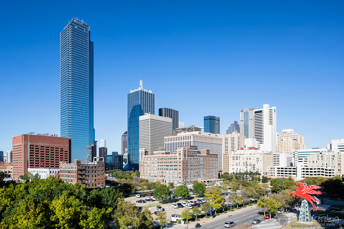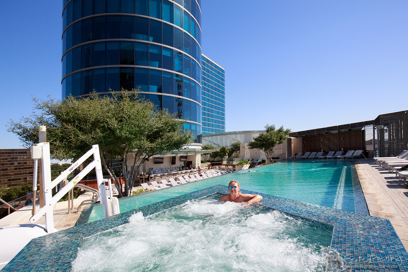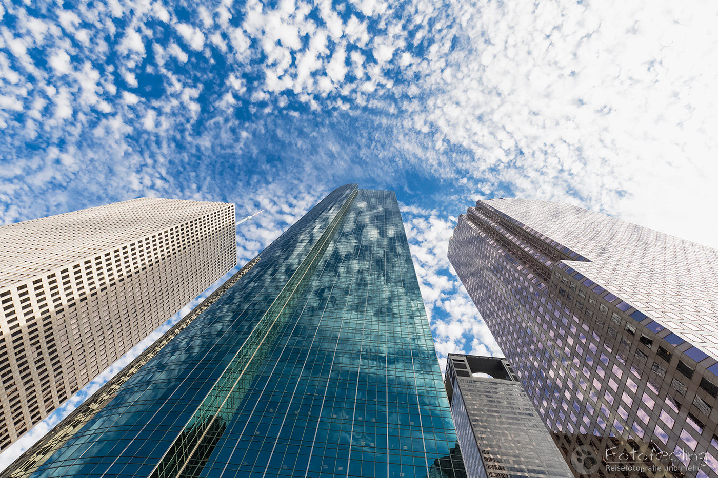 Nachmittags waren wir zurück in Houston und liefen noch einmal durch die Hochhäuser der Stadt. Chris war voll in Aktion, schmiss sich auf den Boden und machte Bilder, während ich so tat, als gehöre ich nicht dazu. Besonders hatte es ihm das Chevron Building in der Smith Street angetan, das er ausgiebig von allen Seiten und Perspektiven ablichtete. Ich setzte mich derweil in den Schatten und betrachtete das Ganze mit etwas Abstand. Die Hochhäuser hier waren wirklich beeindruckend und dieses Gebäude ganz besonders.