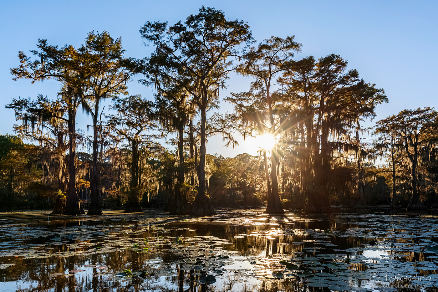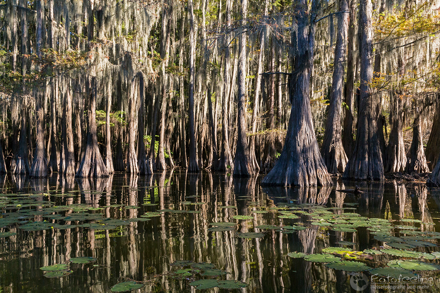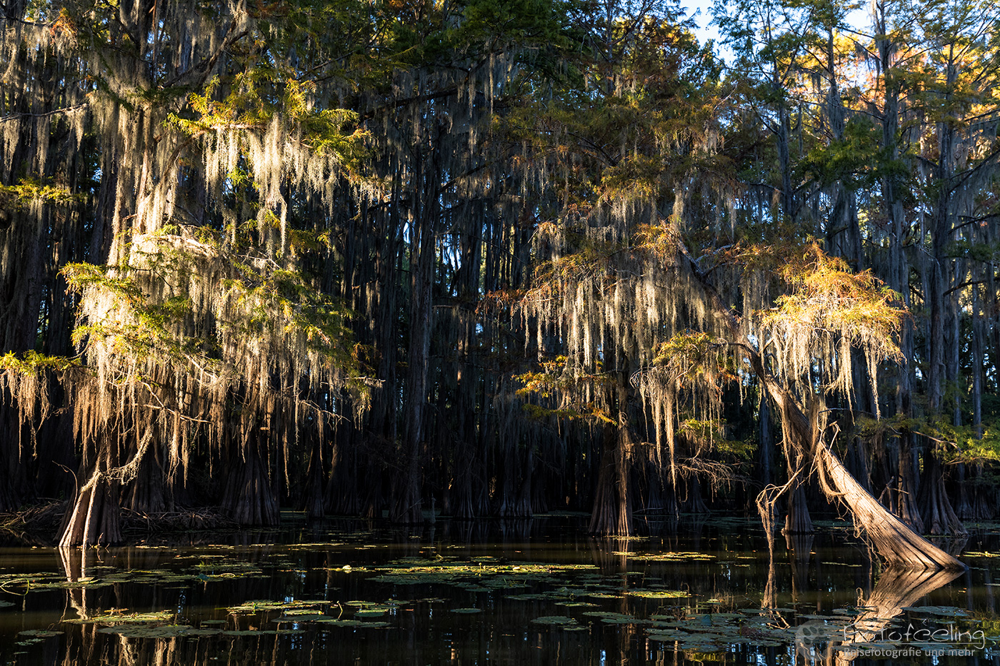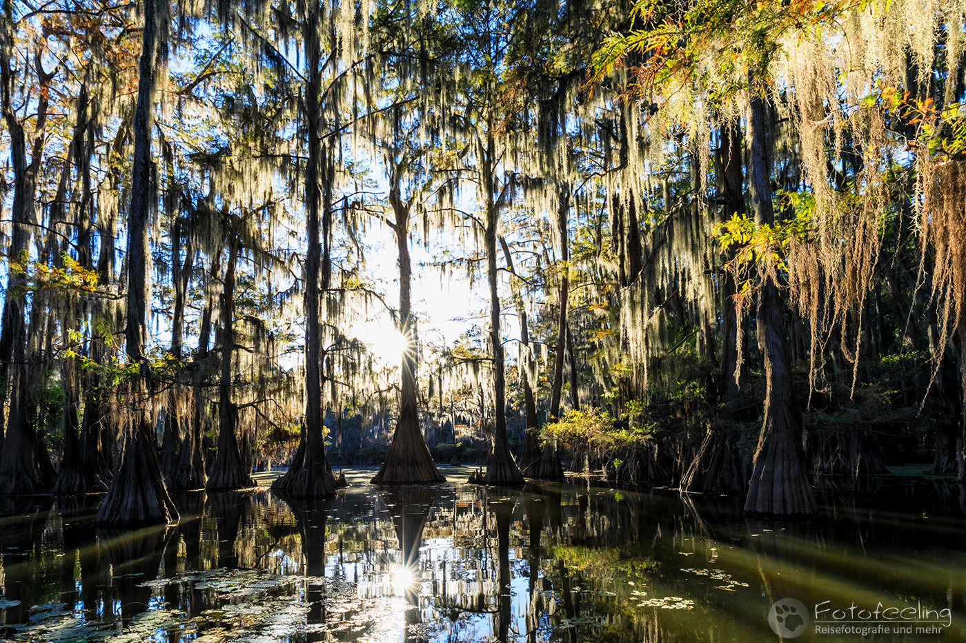 Zurück auf der Campsite lasen wir in unseren Büchern, denn wir mussten noch bis 17.00 Uhr die Zeit überbrücken. Wir hatten nämlich eine Sundowner Tour auf den Caddo Lake gebucht.
