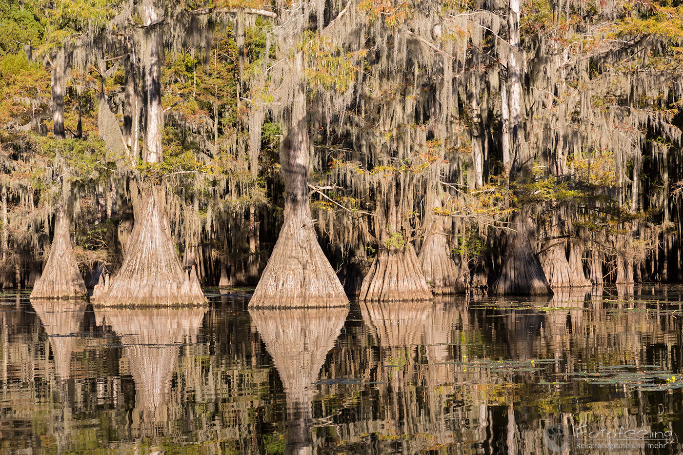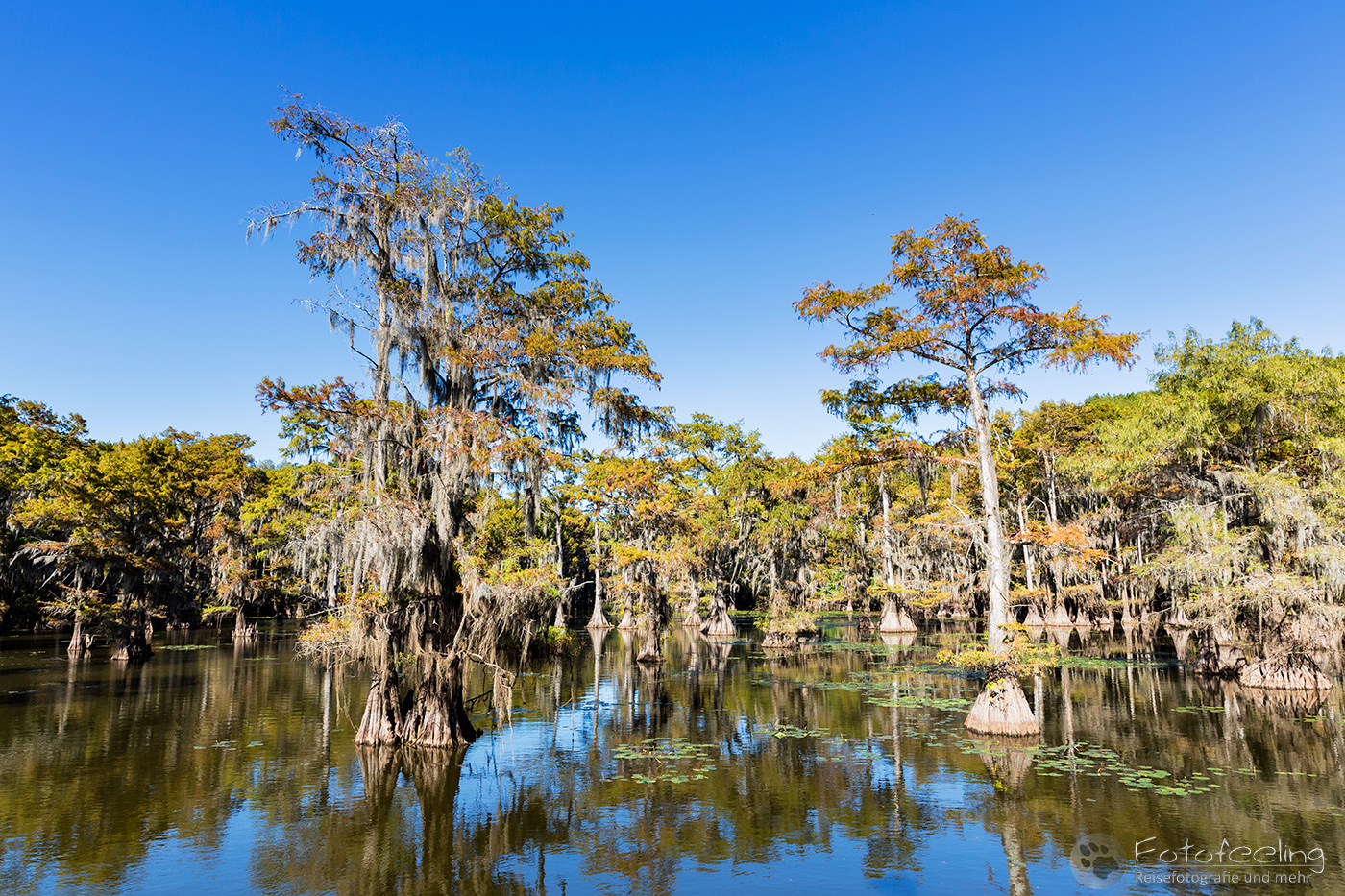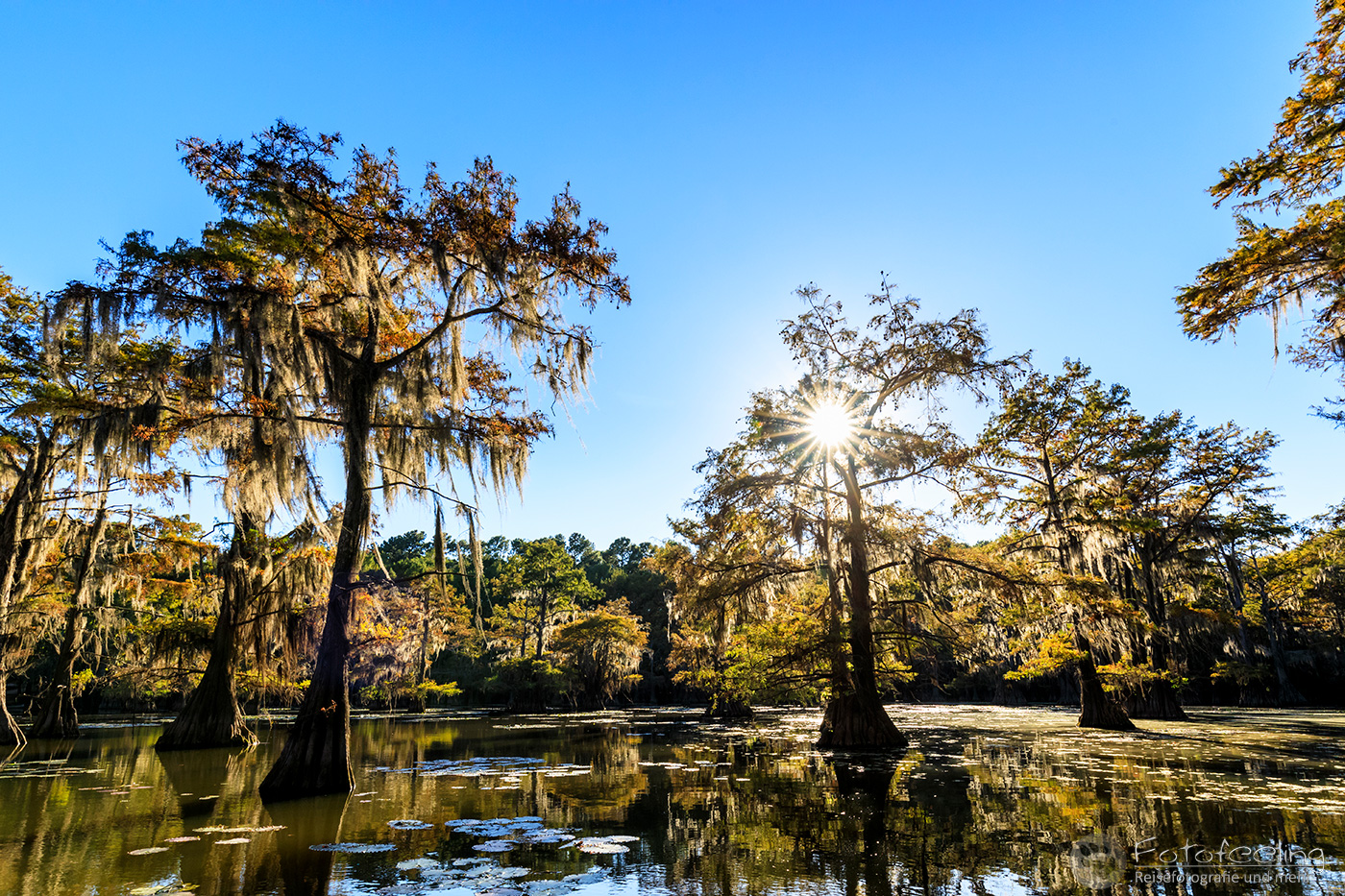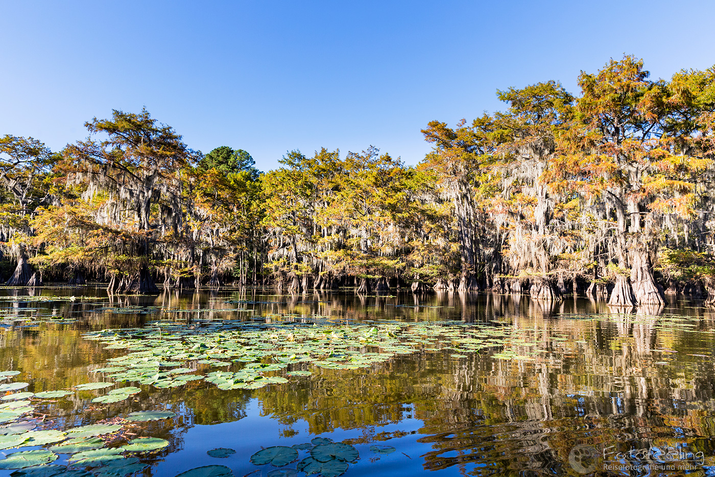 Zurück auf der Campsite lasen wir in unseren Büchern, denn wir mussten noch bis 17.00 Uhr die Zeit überbrücken. Wir hatten nämlich eine Sundowner Tour auf den Caddo Lake gebucht.