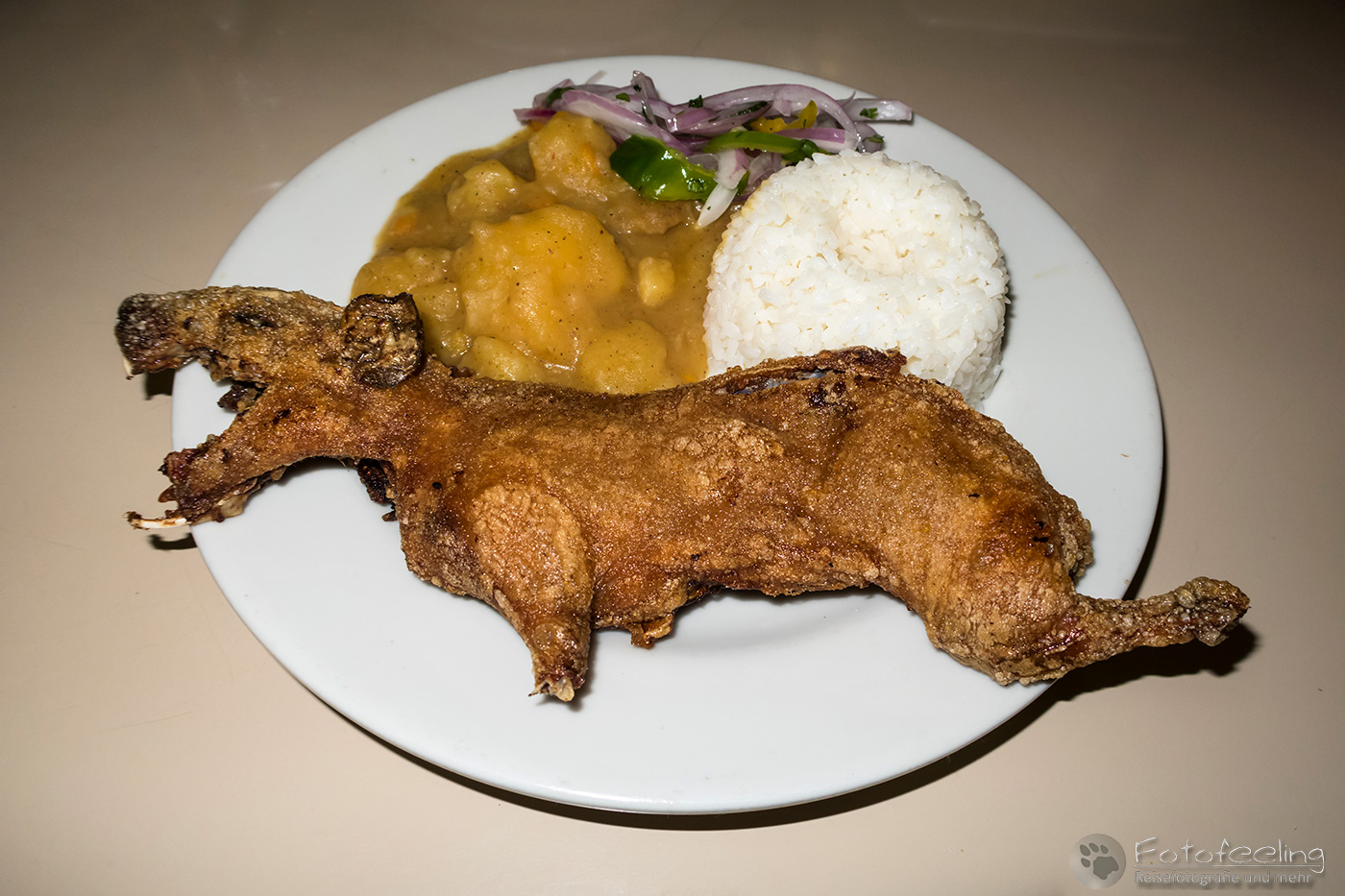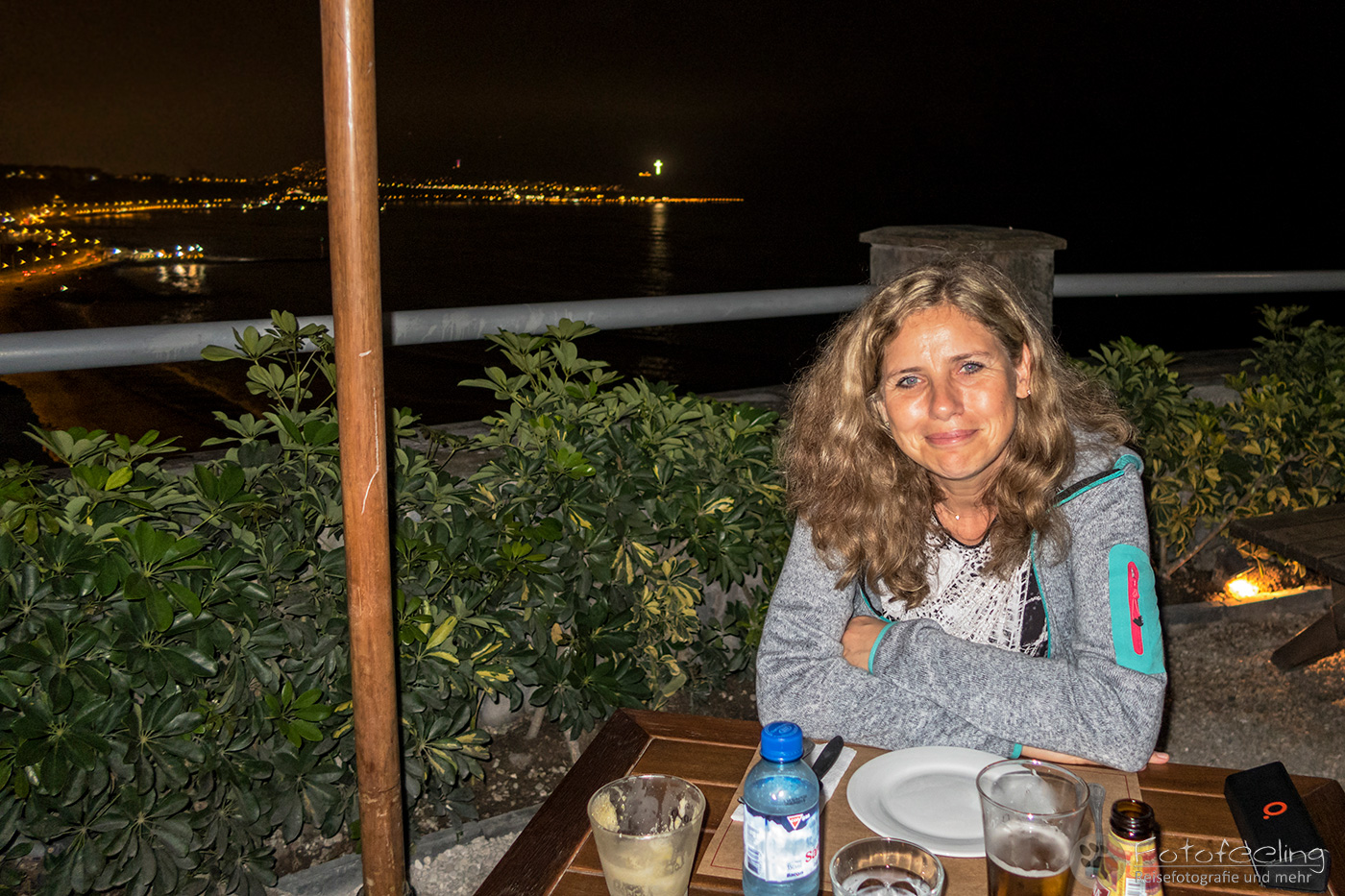 Nach der wohlverdienten Dusche gab es wieder ein sensationelles Abendessen. Als Vorspeise ließen wir uns knusprige Käse-Kartoffelbällchen mit Avocado Creme schmecken. Als Hauptgang hatte ich Hühnchen in Erdnusssoße mit Salat und Chris, wie ihr sicher schon vermutet habt, Risotto mit Lomo Saltado. Was für ein Genuss! Durch den Regen hatte es ganz schön abgekühlt, so dass wir nur noch kurz den Abend auf dem Balkon ausklingen ließen.