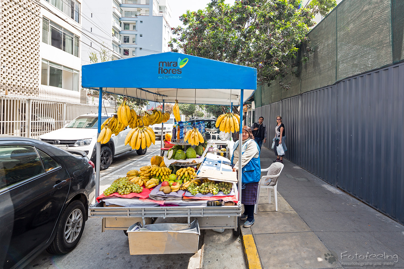 Mittags holten wir uns ein Sandwich und einen frischen Fruchtsaft im Einkaufszentrum Larcomar. Während wir aßen, beobachteten wir die Leute um uns herum und genossen die Wärme der Sonne.