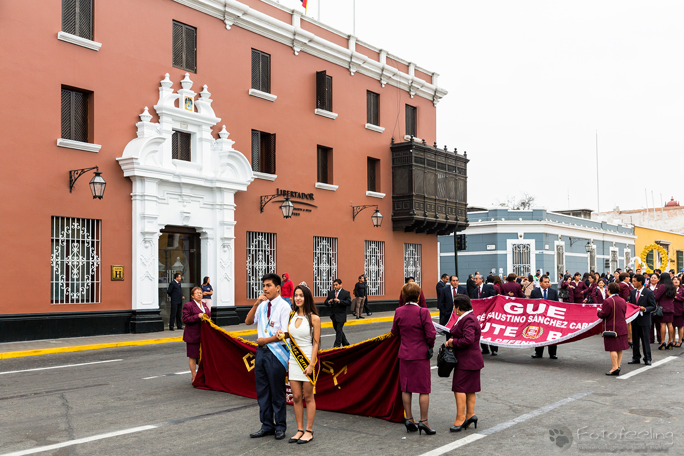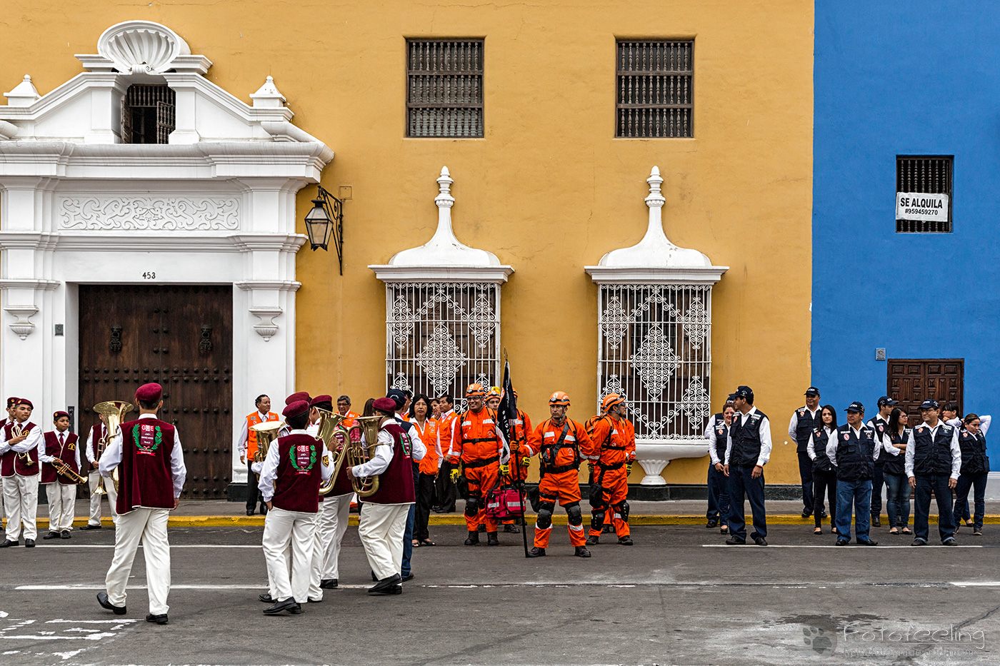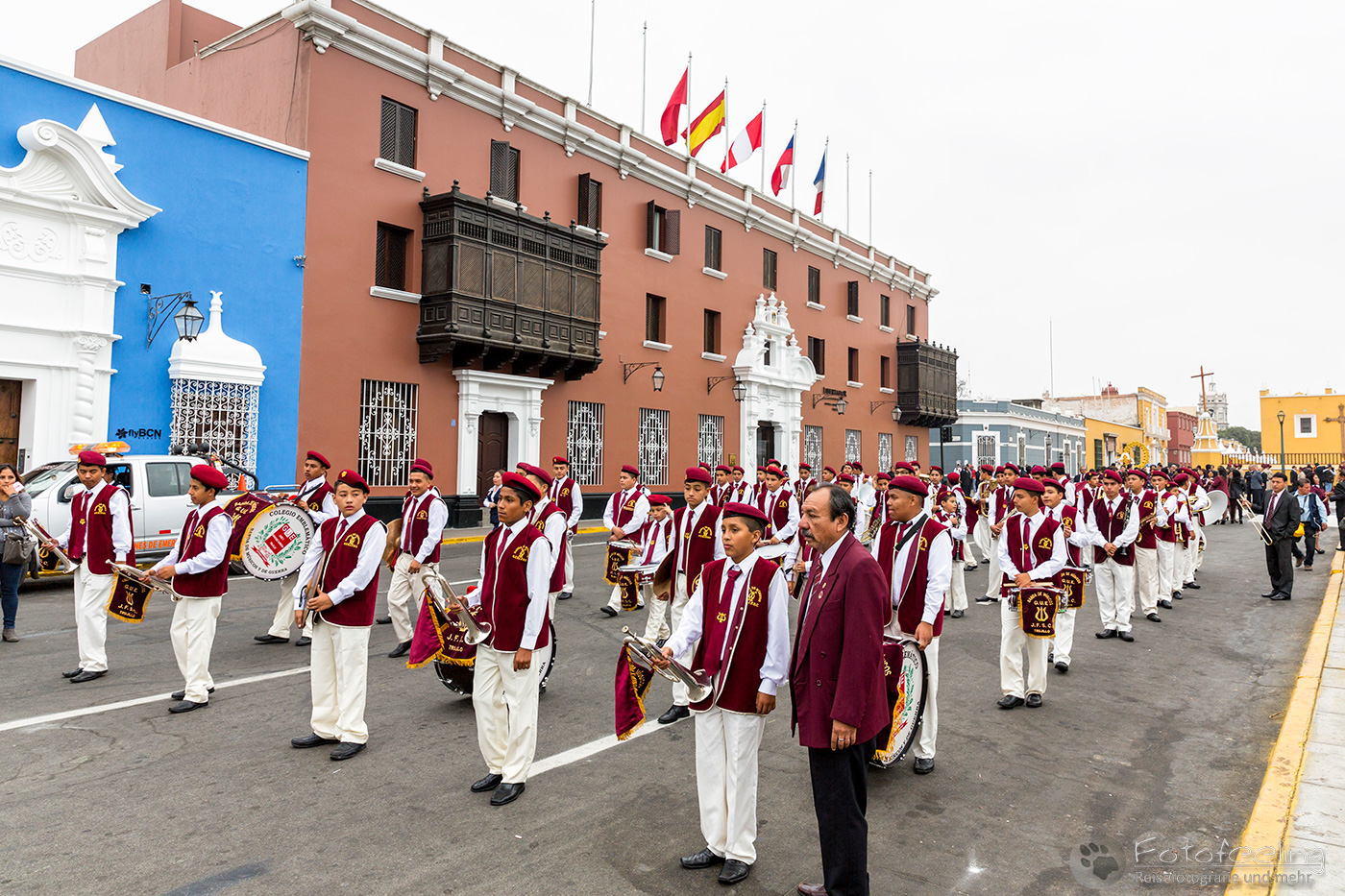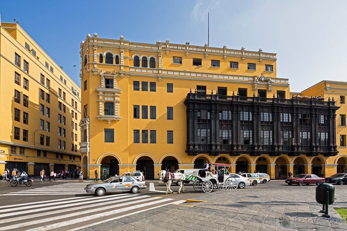 Am späten Nachmittag brachte uns ein Taxi zur Plaza de Armas im alten Stadtviertel Limas ca. 7 km von Miraflores entfernt. Über eine mehrspurige Schnellstraße kamen wir zügig dorthin. Die Plaza besteht aus einem sehr gepflegten Platz mit schönen Häusern im Kolonialstil, dem Präsidentenpalast und der Kathedrale von Lima. Wir fotografierten ein wenig und kamen an eine Brücke, über die es ins angrenzende Armenviertel von Lima ging. Obwohl wir es zu diesem Zeitpunkt nicht wussten, blieben wir beide stehen und kehrten um, was wohl eine gute Entscheidung war, denn nicht selten werden hier Touristen ihres Geldes entledigt. Doch davon lasen wir jedoch erst später. An diesem Nachmittag gingen wir zurück und schlenderten durch die Einkaufspassage, wo wir in einem Starbucks Café Rast machten und auf die Dämmerung warteten.