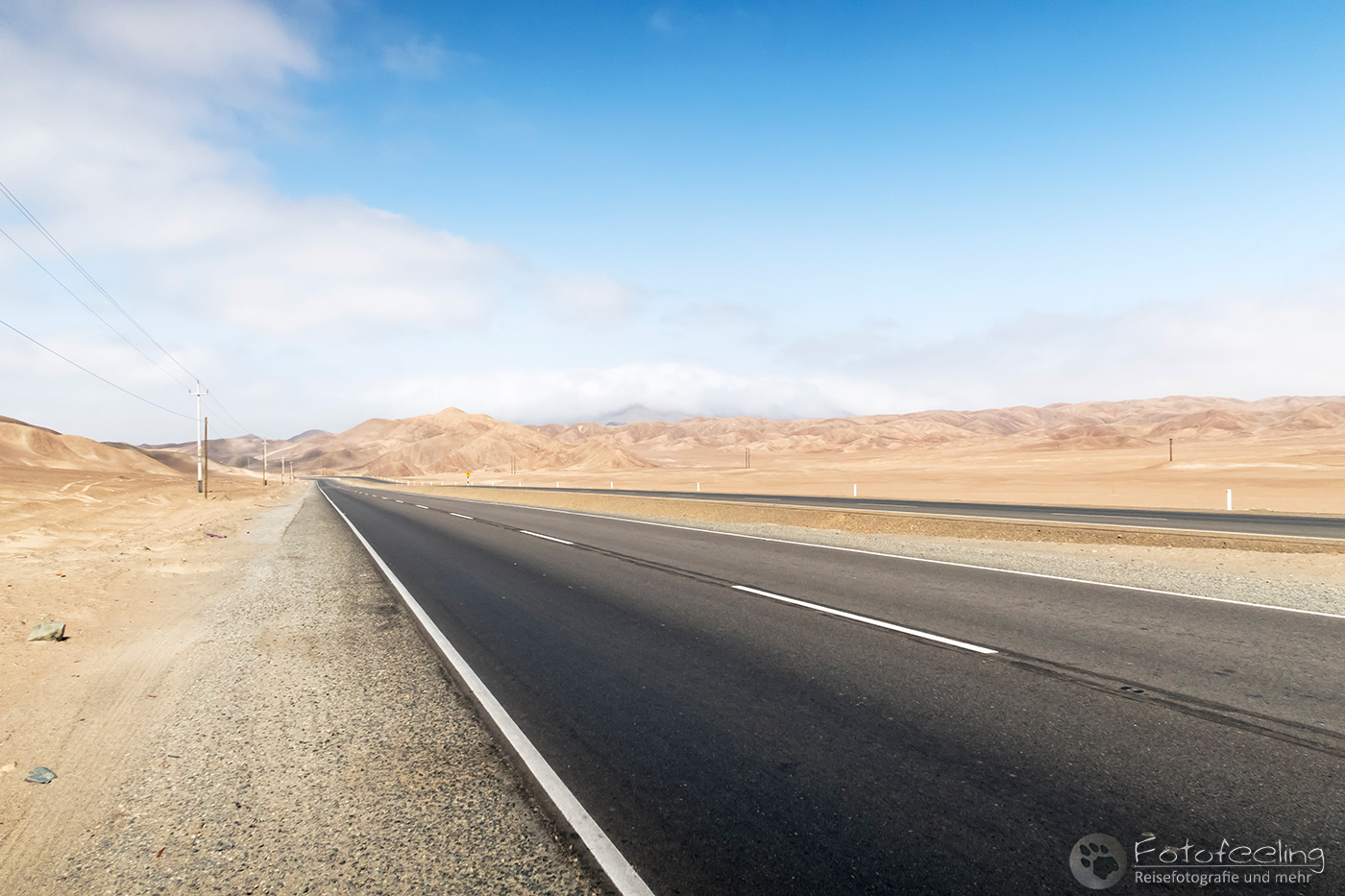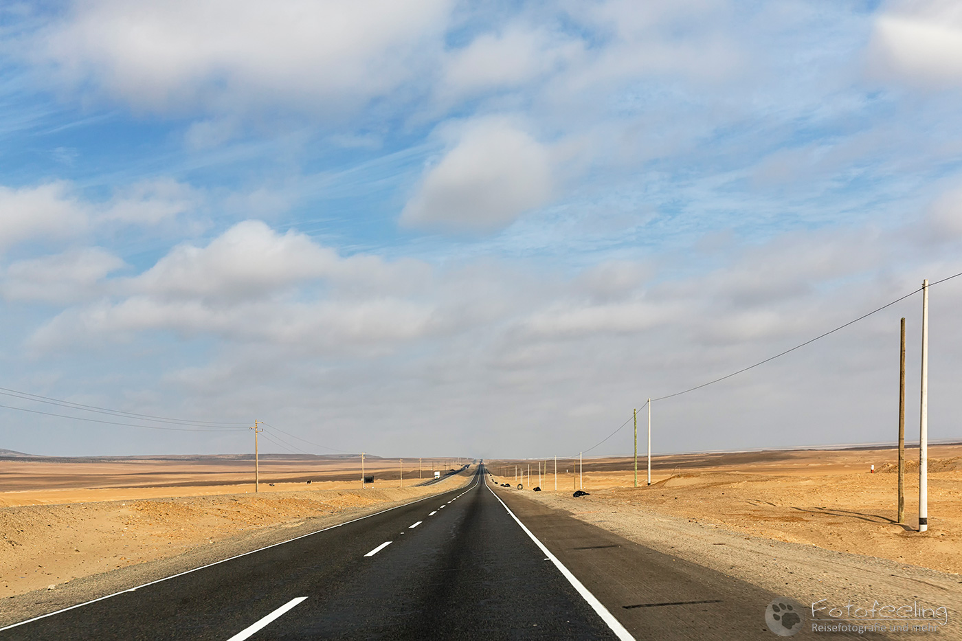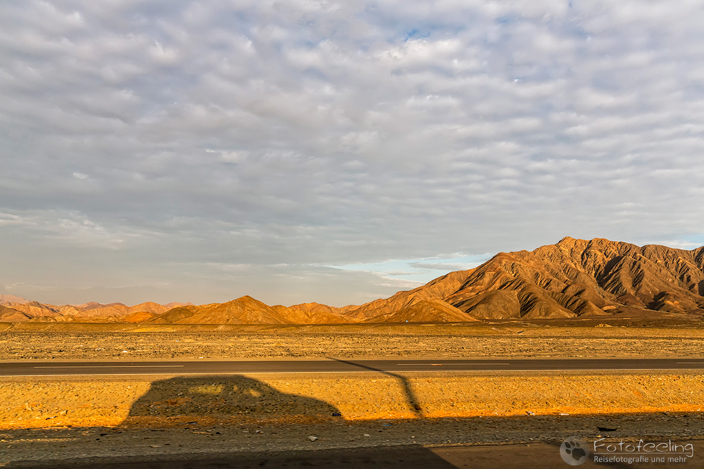 Immer wieder passierten wir Mautstellen, Baustellen und die Straße wechselte von relativ kurzen zweispurigen Abschnitten auf einspurig. So auch die Landschaft von Wüste zur landwirtschaftlichen Nutzfläche, zu Mienen und wieder zur Wüste. Die Straße zog sich und die Stunden vergingen.